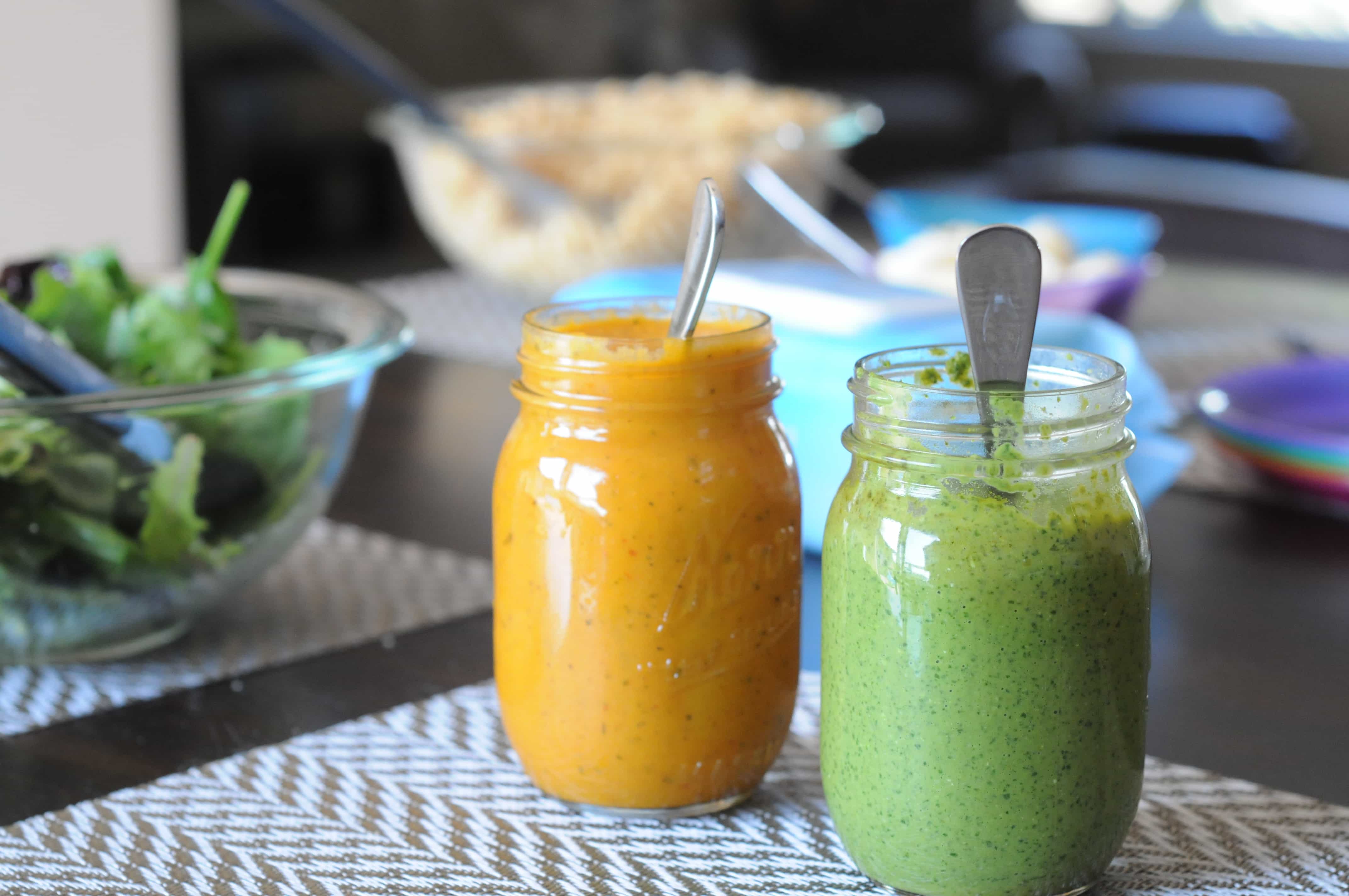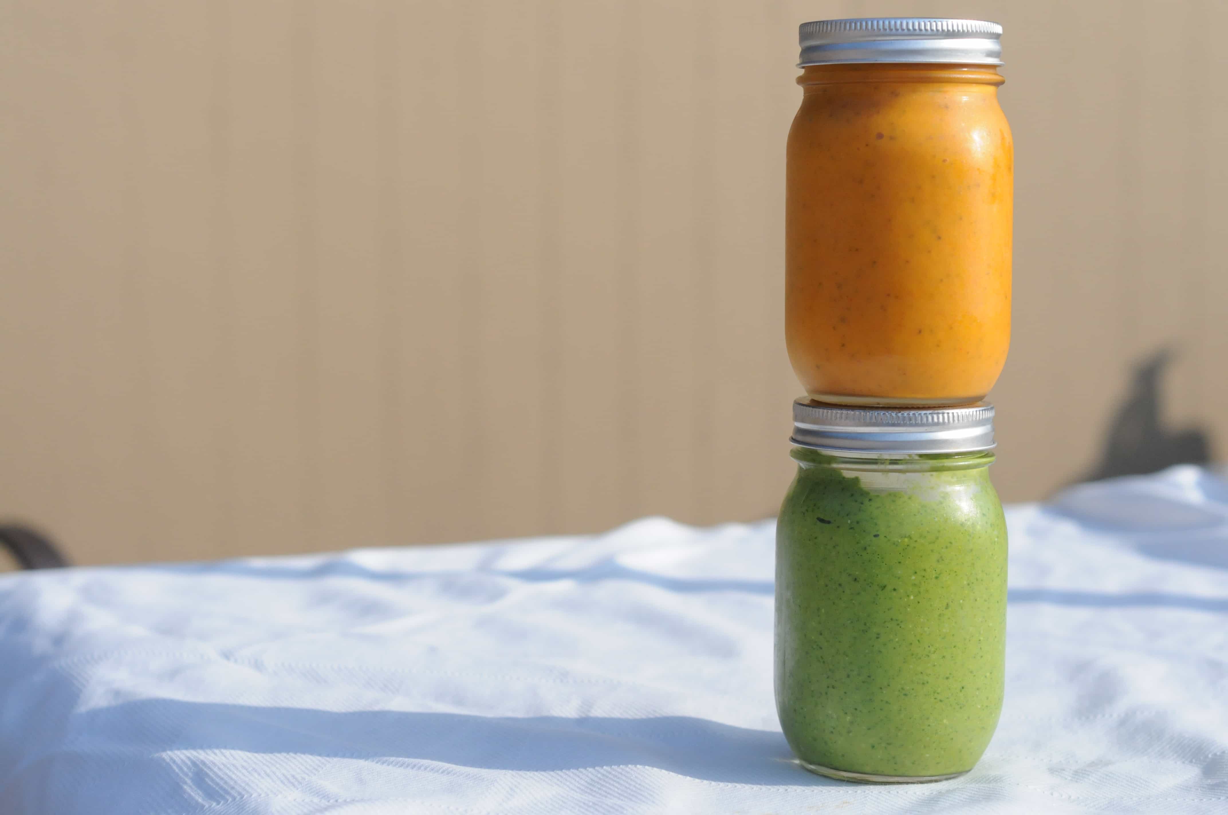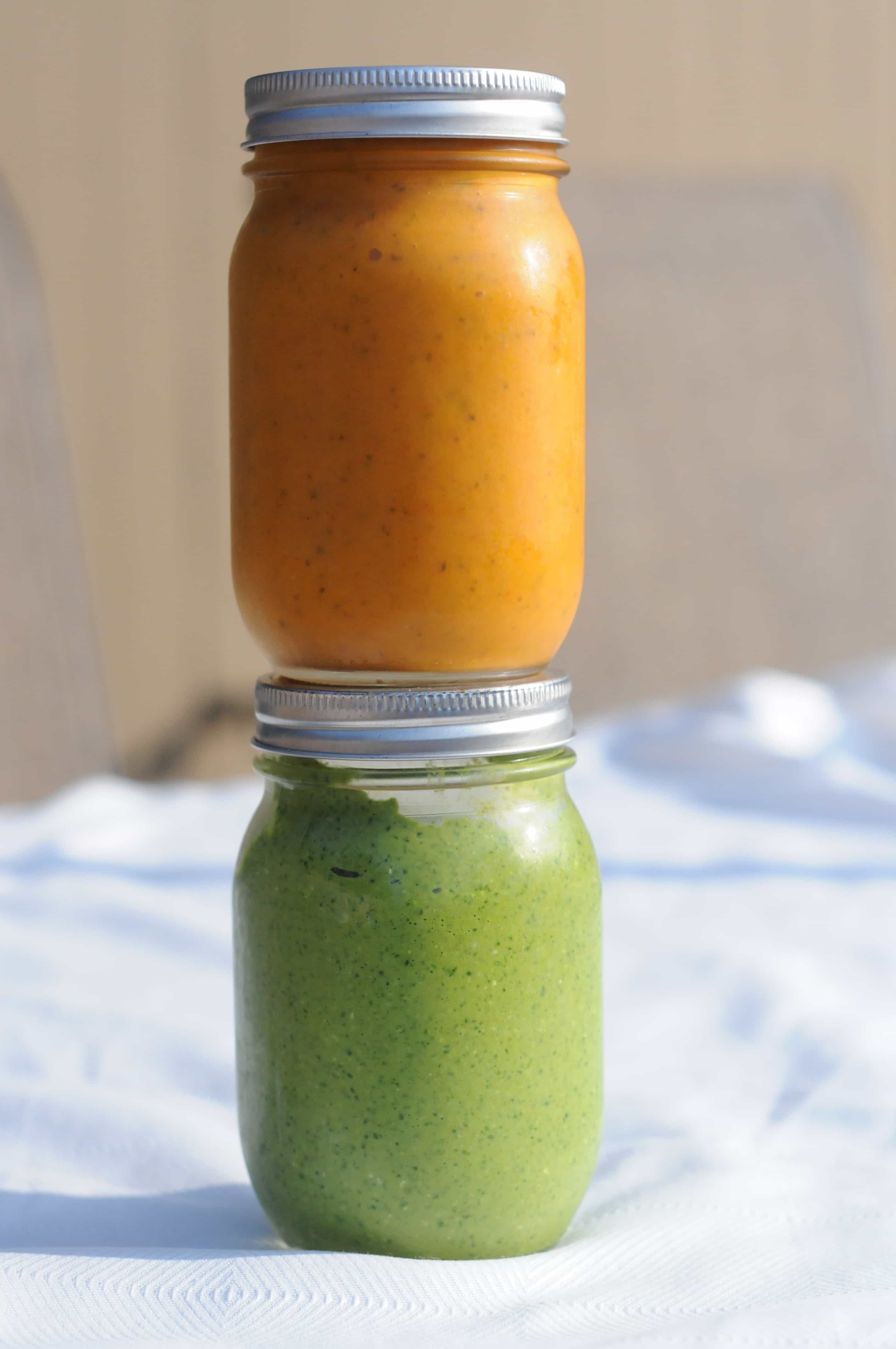 I had two different sauces on hand that I had made earlier in the week…my Oven Roasted Pasta Sauce and Popeye’s Pesto Pasta Sauce.