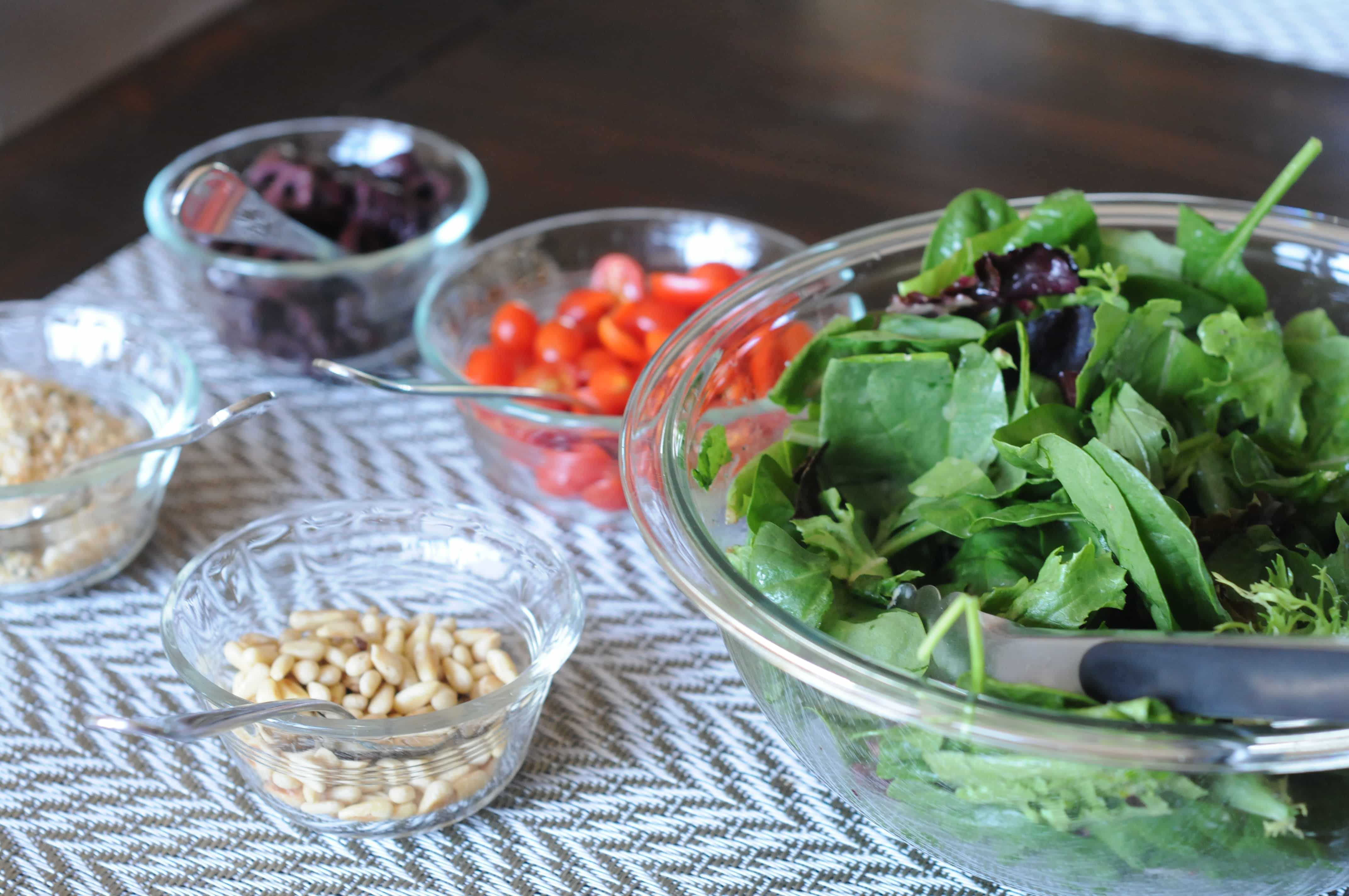 A quick green salad with an apple cider-dijon vinaigrette and an array of toppings for the mamas and we were set!