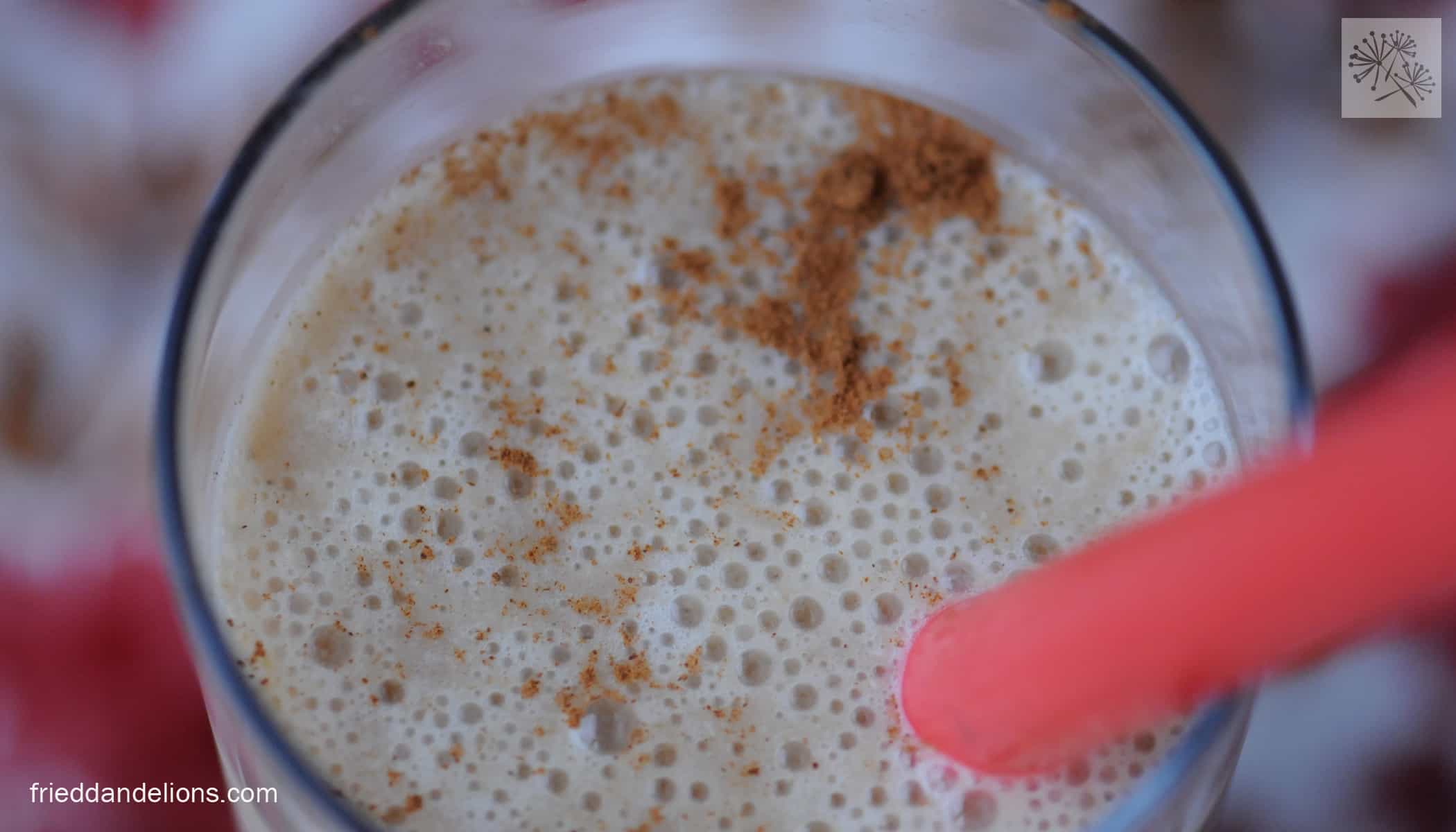 Put all ingredients into a blender and let it whirl. Pour into serving glass, add a small dash of cinnamon to make it look fancy, and enjoy!