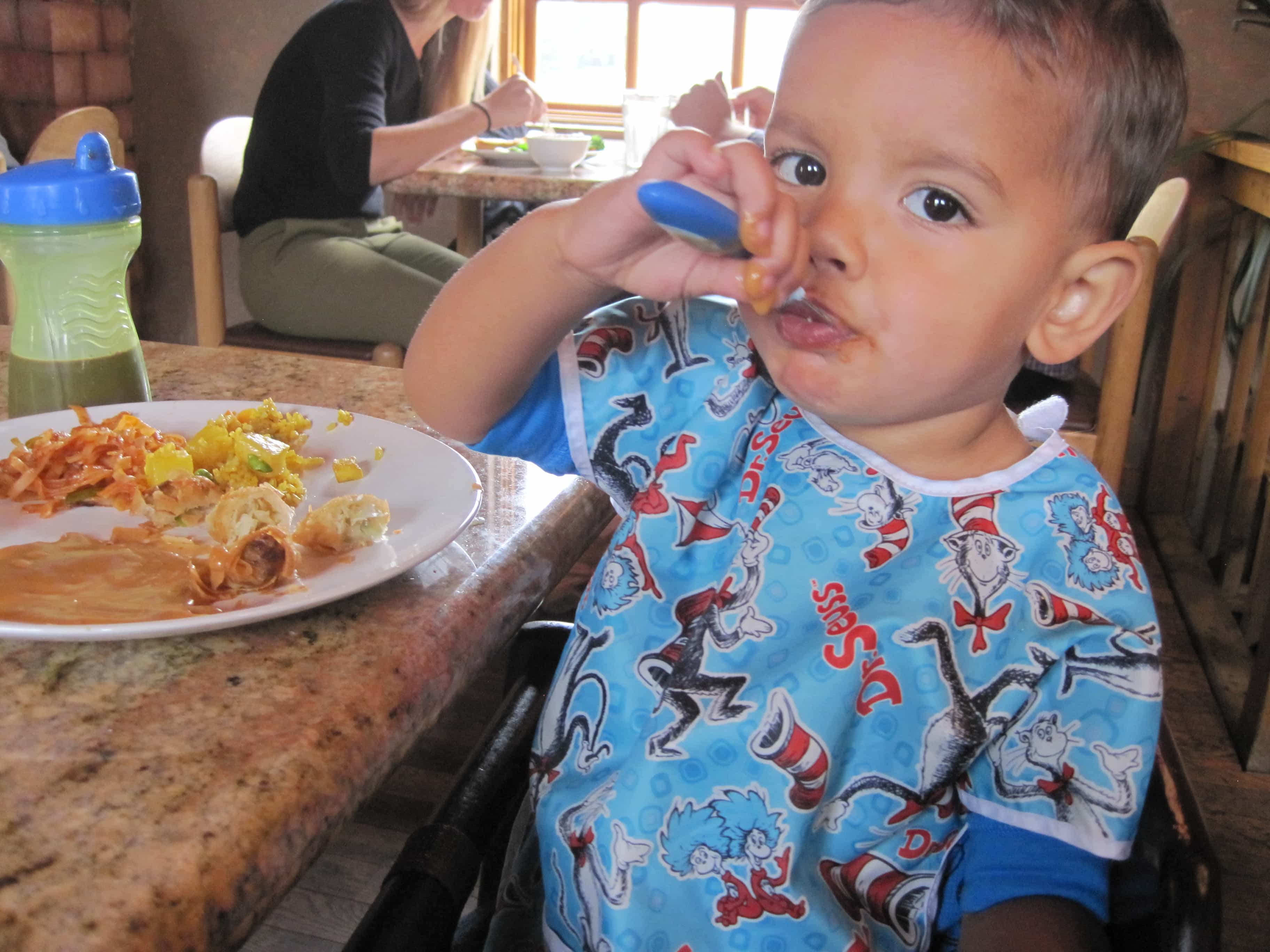 Then I helped myself to a heap of spring rolls and a huge puddle of amazing peanut sauce! David liked it so much he ate the peanut sauce on its own. David also enjoyed oranges dipped in peanut sauce…he basically ate the peanut sauce at every opportunity.