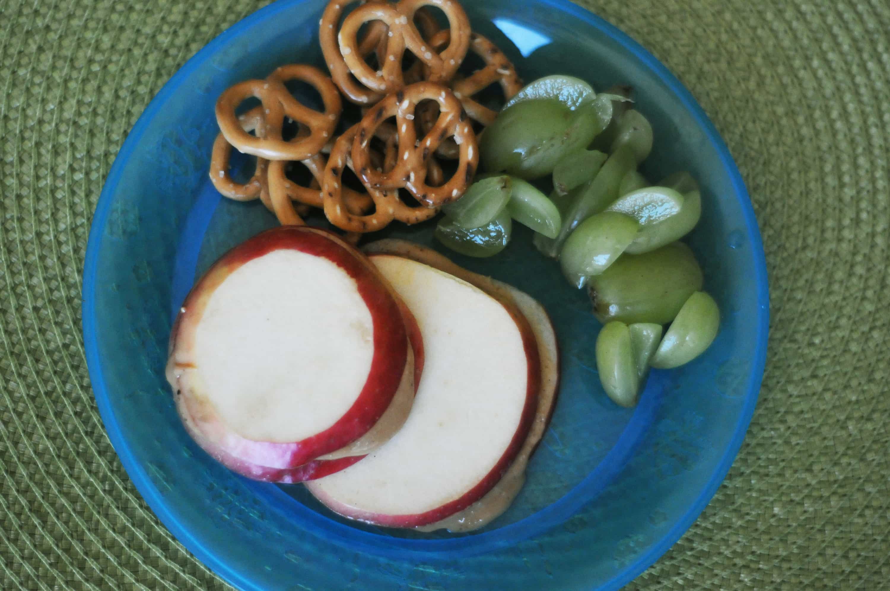 From the looks of facebook, every person I know went back to school this morning. Everyone, that is, except for David and I. We are still in denial that it is summer, even though the calendar clearly says September. We decided to go with the flow and have ourselves a back-to-school lunch today. I saw this idea a few weeks back on Whole Food’s facebook page and made a mental note to try it. We picked up a few Pink Lady Apples (one of my favorite varieties-sweet, tart, and crispy) at the store this morning…I’m so excited that it is apple season!