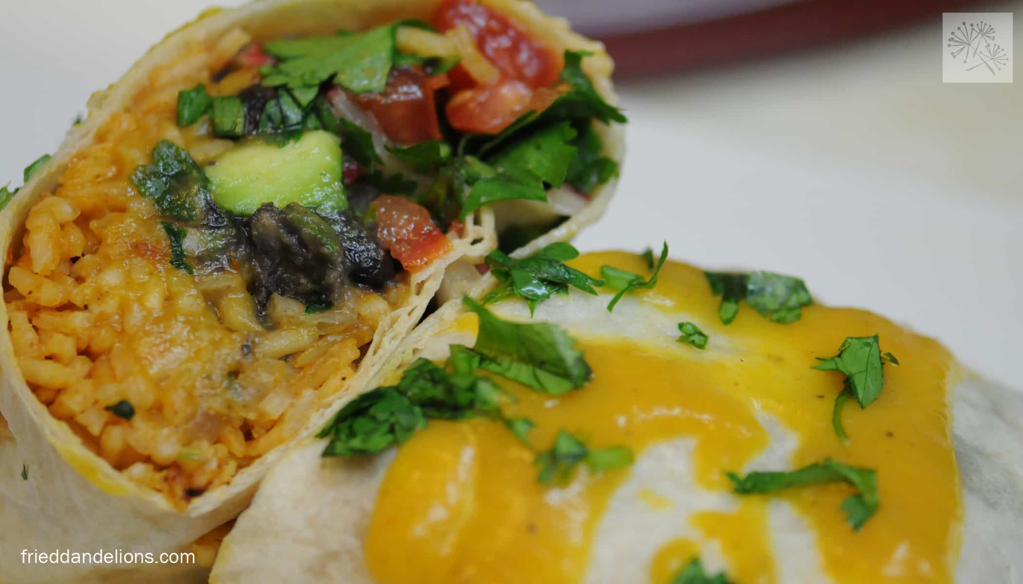 You could fill these burritos with anything you like. The quinoa pilaf from my Chimmichurri burritos would be great! Or make some simple rice and toss a can of beans with some salt, garlic powder, and some onions. Smother in my creamy carrot sauce and you have yourself a winner! Hope you enjoy these as much as we did!