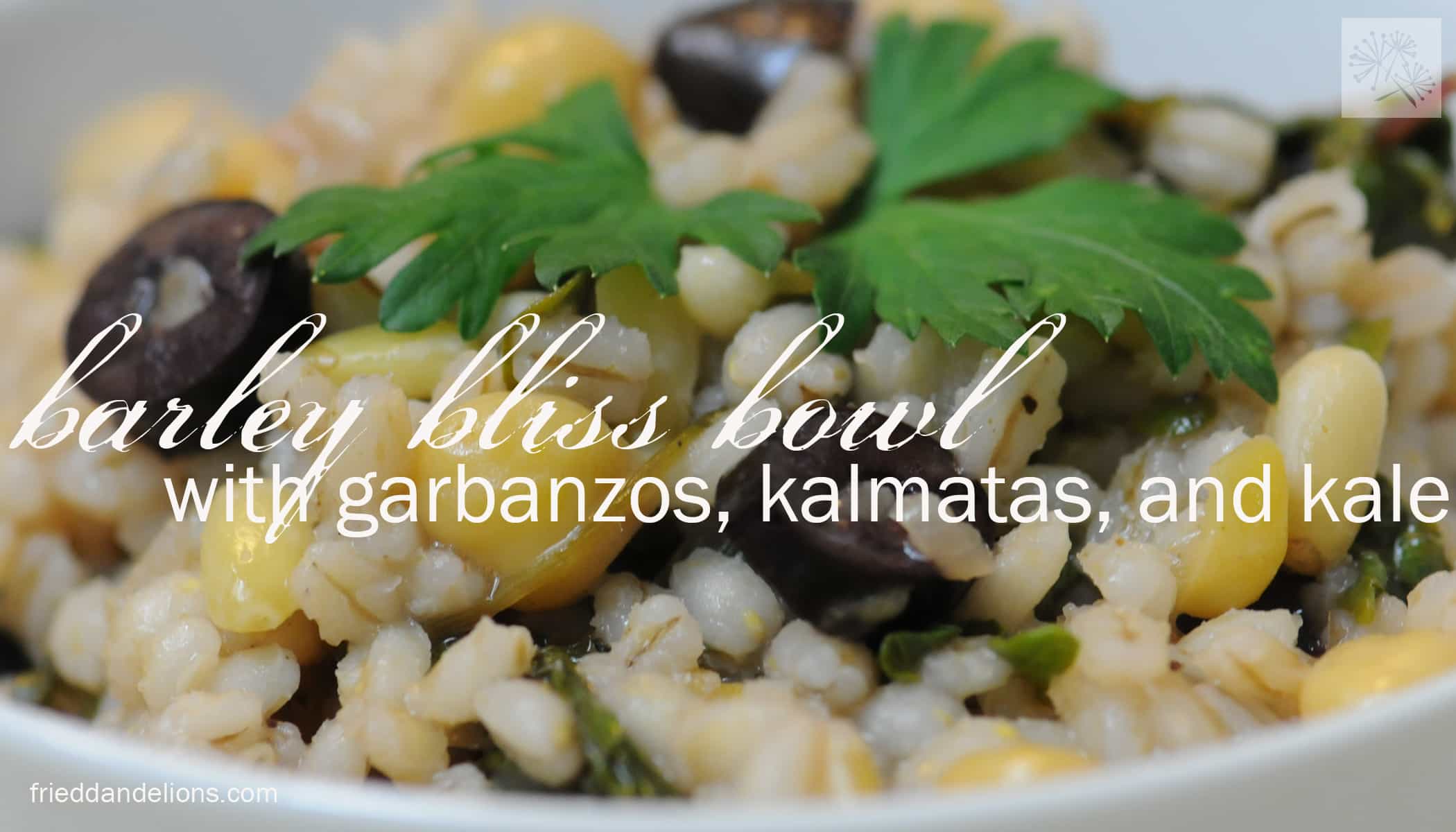 So, what is this delicious meal? I’ll call it Barley Bliss Bowl—a heaping bowl of barley, garbanzos, kalamata olives, kale, and lemon juice, with a few other goodies. My friend Kristin shared a recipe with me last week, and then I changed about half of the ingredients to make my own winterized version. The original recipe is served more like a salad and I’ll definitely be trying it out when we return to warmer weather. But since I can hear the cold Seattle rain pounding on my deck right now I know that won’t be for a long while. Let’s stick to this warm cozy version for now!