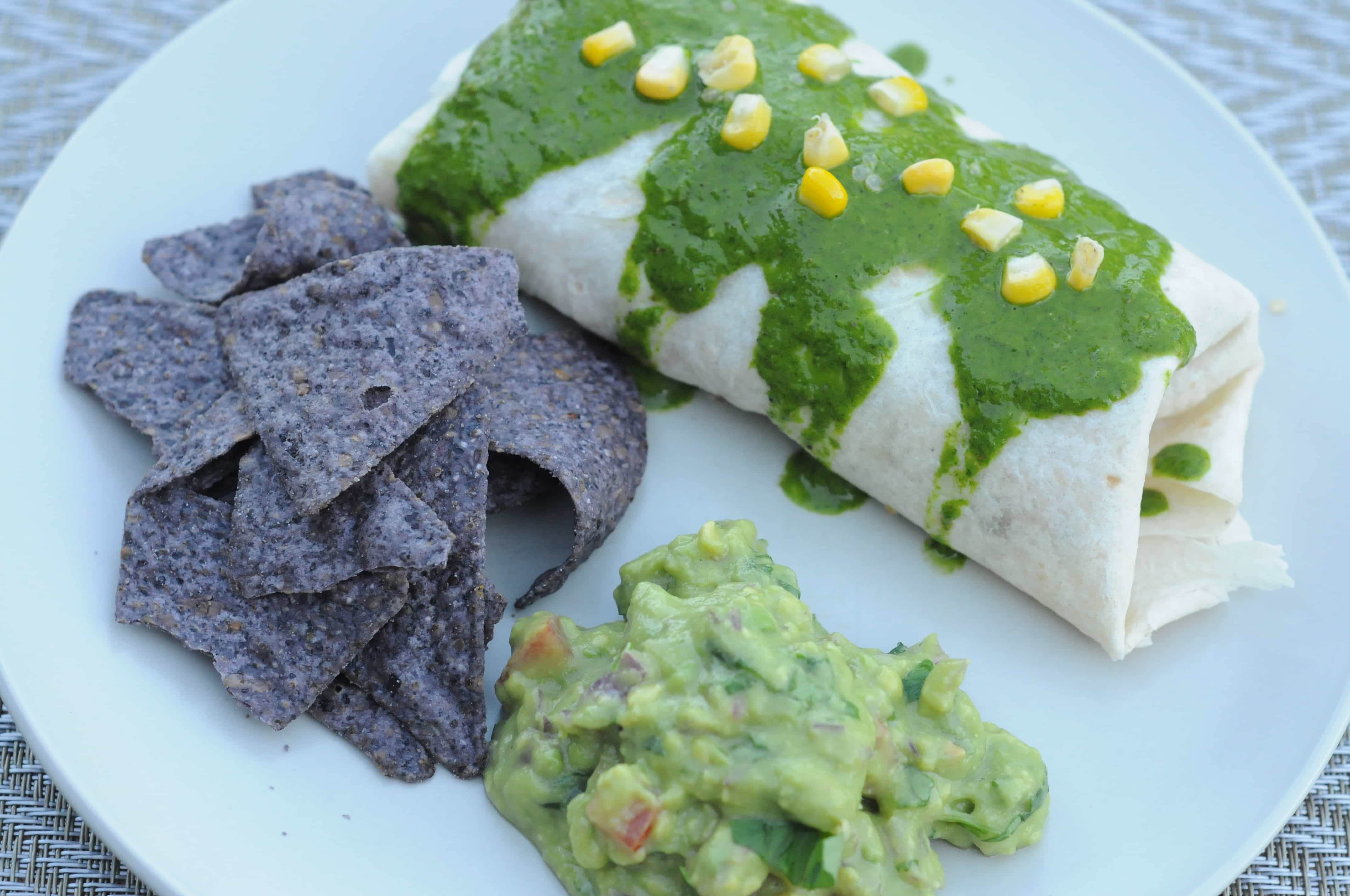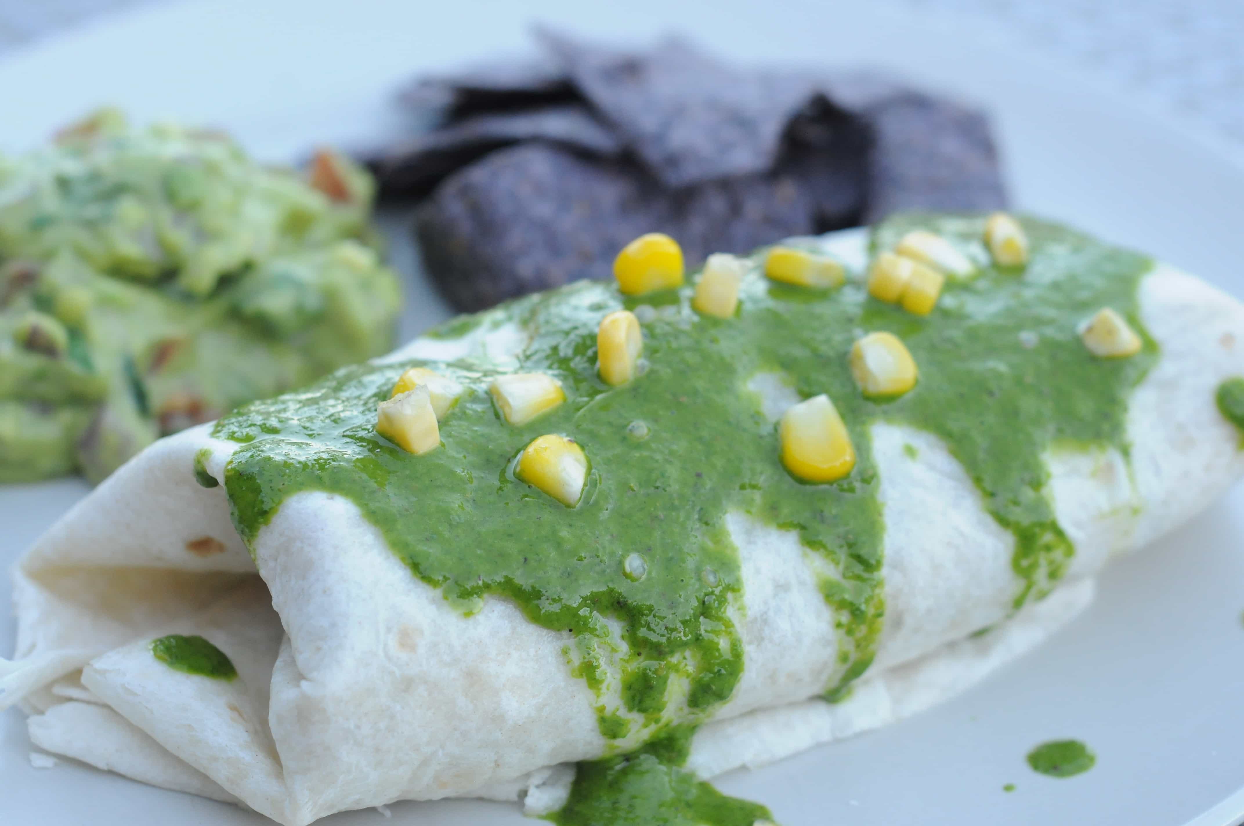 Last night, after a busy day of cooking breakfast treats for my moms’ group at church, I needed to make a quick dinner. And ever since having the veggie chimichanga while in California I have been craving more! So I put together my own version, full of fresh bright South American flavors like cilantro, corn, quinoa, and black beans! I made a “quinoa pilaf,” stuffed it into a big tortilla, and then smothered the whole thing with my favorite (and so quick to make) chimichurri sauce, and served it with a side of guacamole! Yum! I was so glad we had some leftovers for my lunch today!