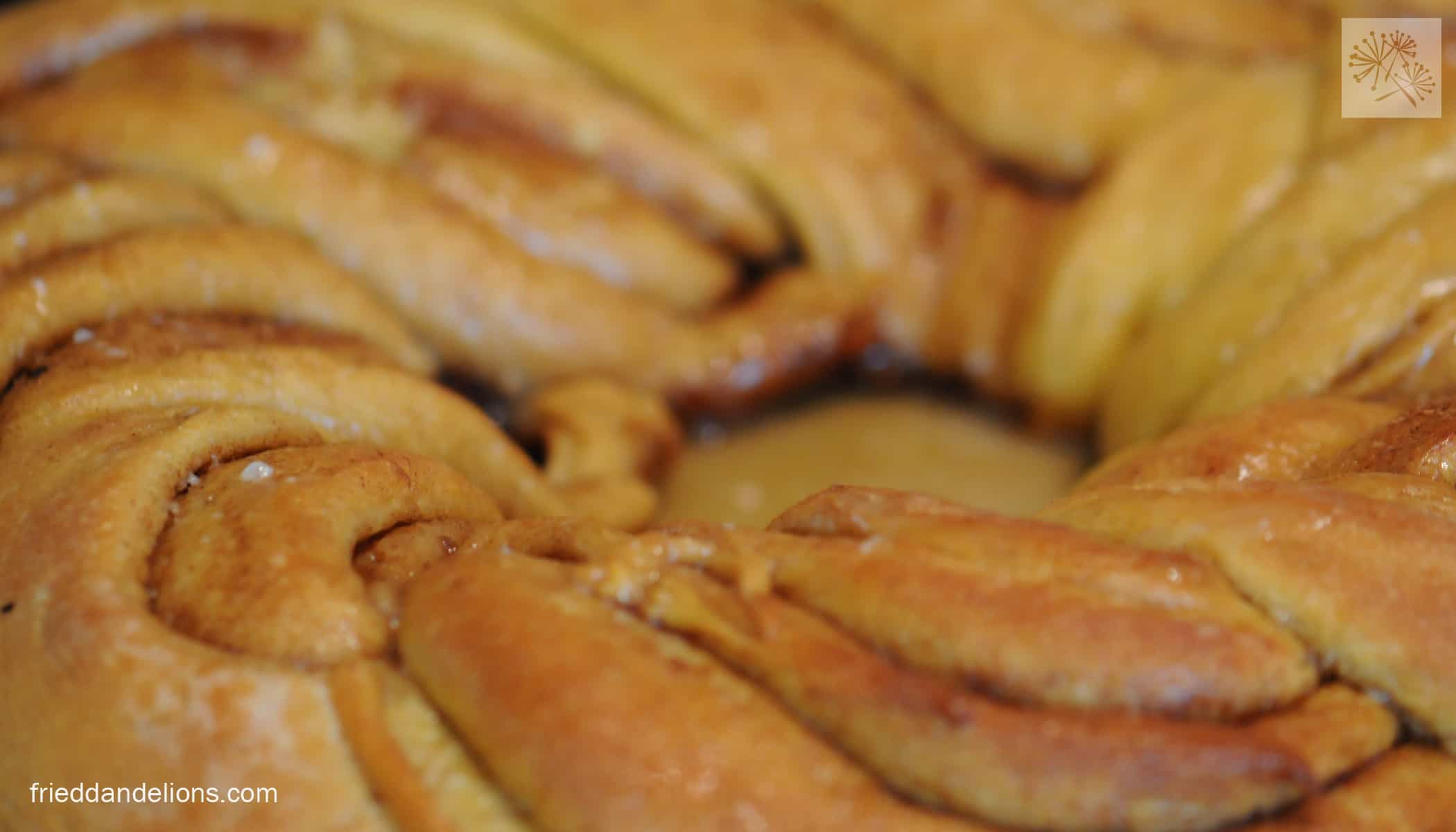 Pumpkin Cinnamon Rolls—I made pumpkin cinnamon rolls following Chef Chloe’s recipe. I skipped her cranberry filling and used her cinnamon filling from her cookbook. Delicious—I will be making this all of the time now—uh oh! I rolled them into a wreath following these instructions.