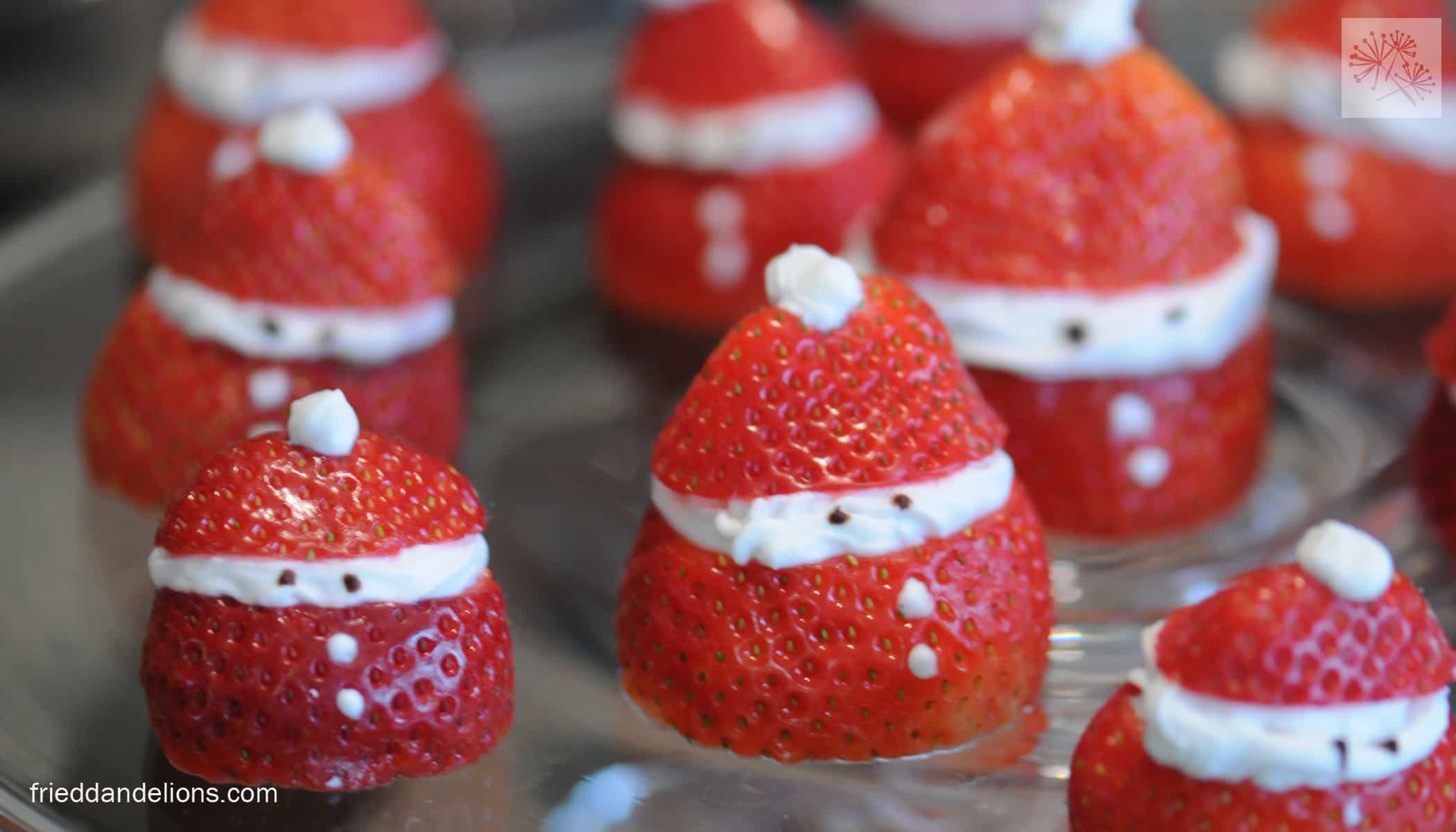 I also made little Santas out of strawberries and coconut whipped cream. Super cute, surprisingly easy (I just used my pastry bag to squeeze the whipped cream out), and very quick to assemble. I think David ate most of them—he stole them off everyone’s plates!
