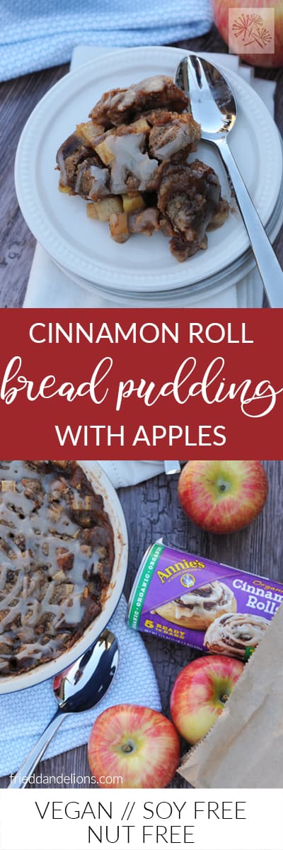 Bread pudding was one of my favorite desserts growing up! Typically made out of day old bread and a simple custard, it is a quick and easy dessert to throw together. When Annie’s Homegrown reached out to ask me about trying their new certified organic Cinnamon Rolls I knew that I wanted to try using them in my own vegan bread pudding! It turns out that was a VERY good idea! Between the boys and I, we polished off our Cinnamon Roll Bread Pudding in less than 24 hours. Yep. It’s that good.