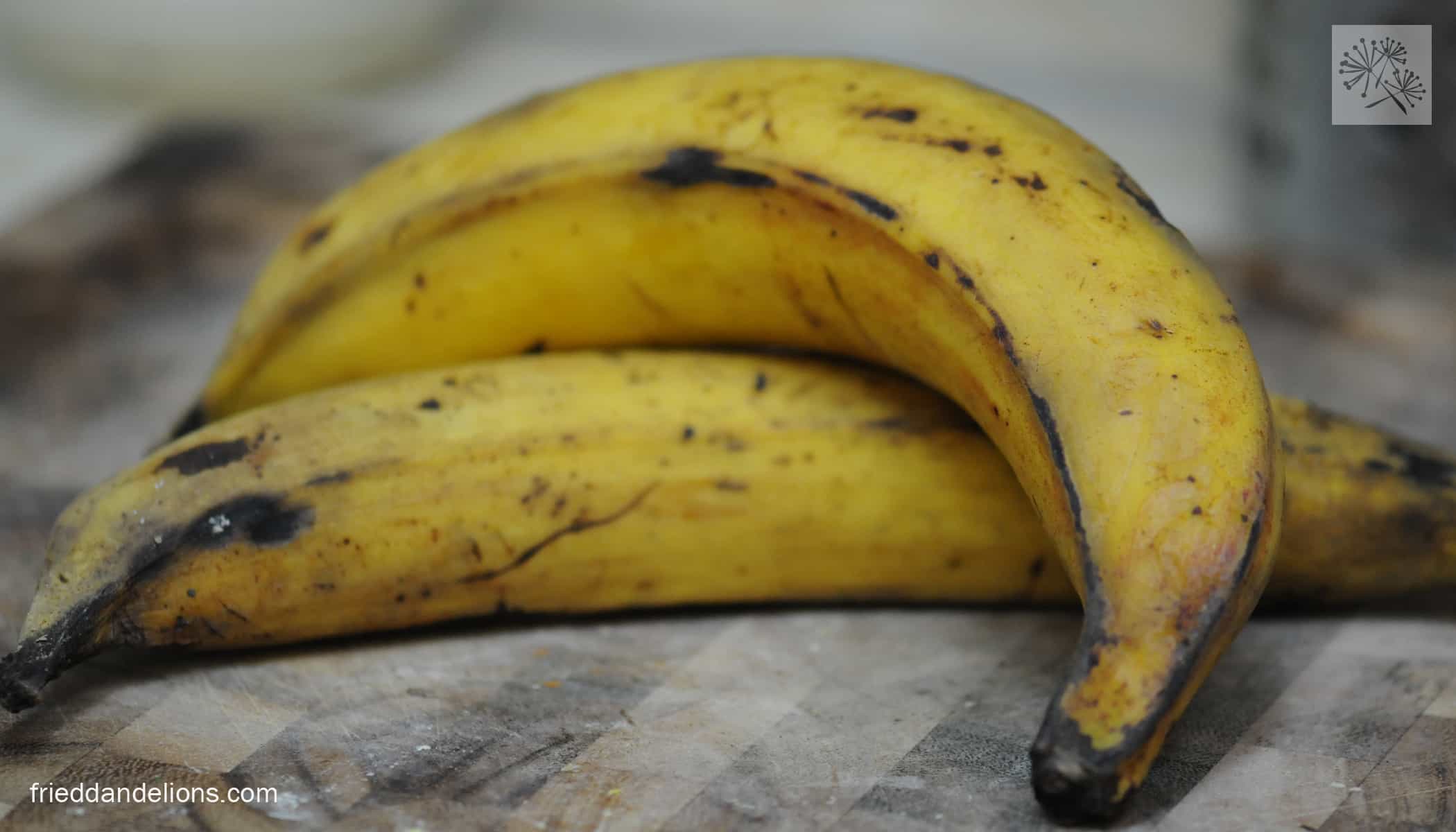 2 large, very ripe plantains, peeled and sliced (The peel should be yellow and covered in brown spots, if not mostly brown. If you can’t find any, you can use bananas which are a little bit sweeter.)