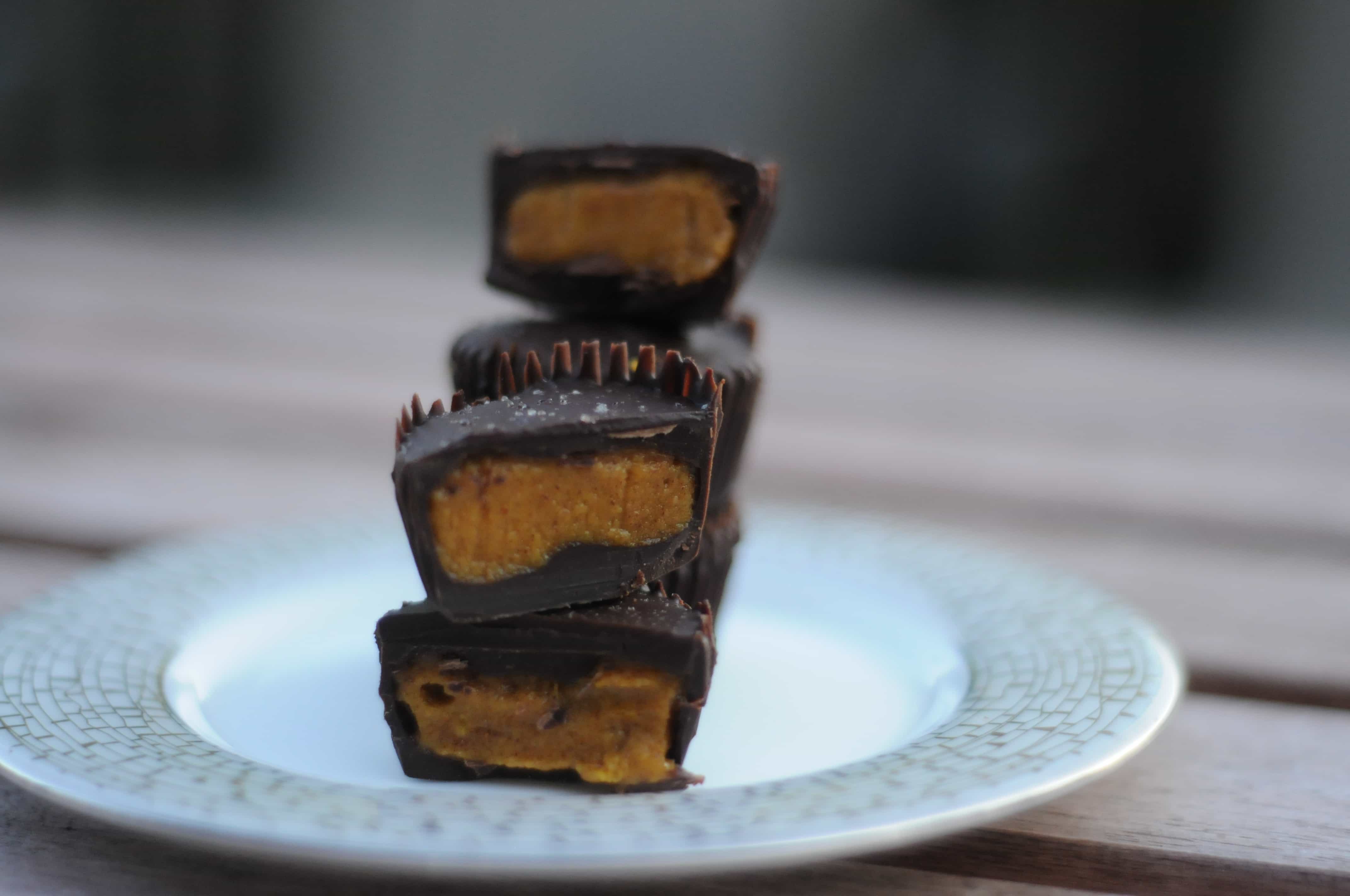 I love peanut butter cups, and even though they are most often made with milk chocolate, I’ve found a few dark chocolate ones that are vegan and delicious! But when I started seeing the idea to make my own floating around the web, and pumpkin ones no less, I knew I had to do it!