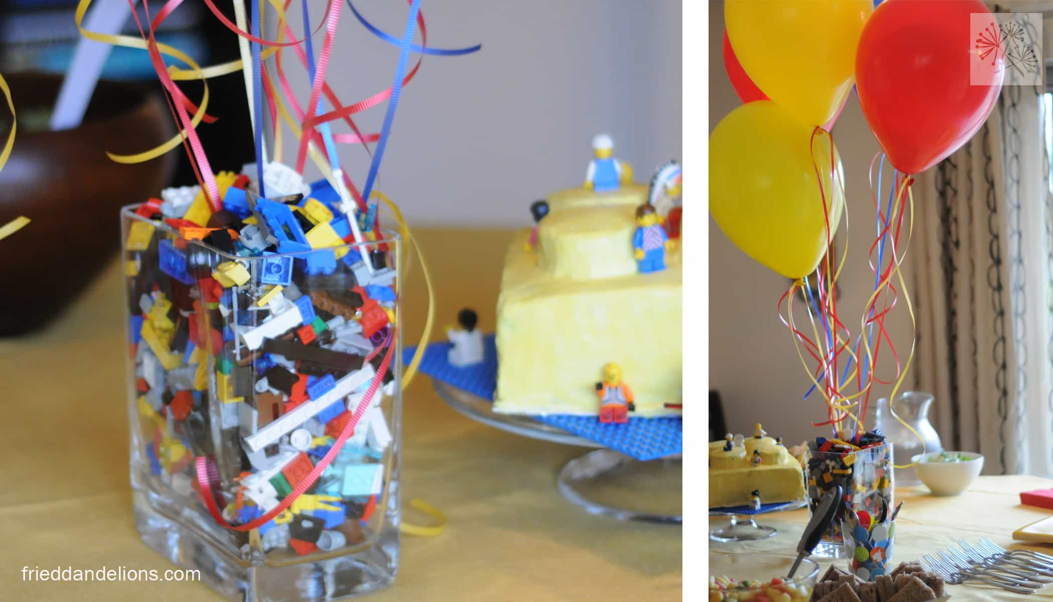 My mom put together a centerpiece filled with Irving’s “grown up” Legos and some balloons.