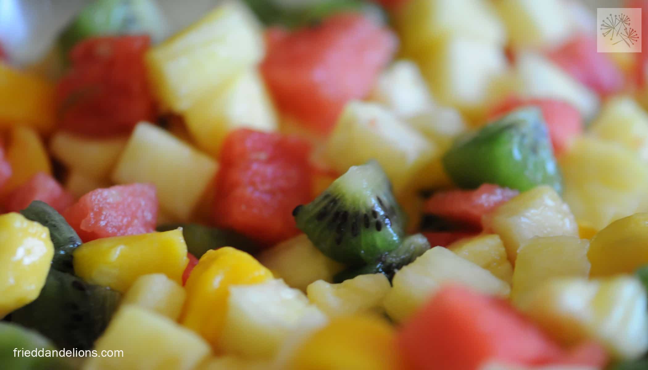 …“Lego Brick” salad (all fruits—mangoes, pineapple, watermelon, and kiwi—were cut into square shapes)…