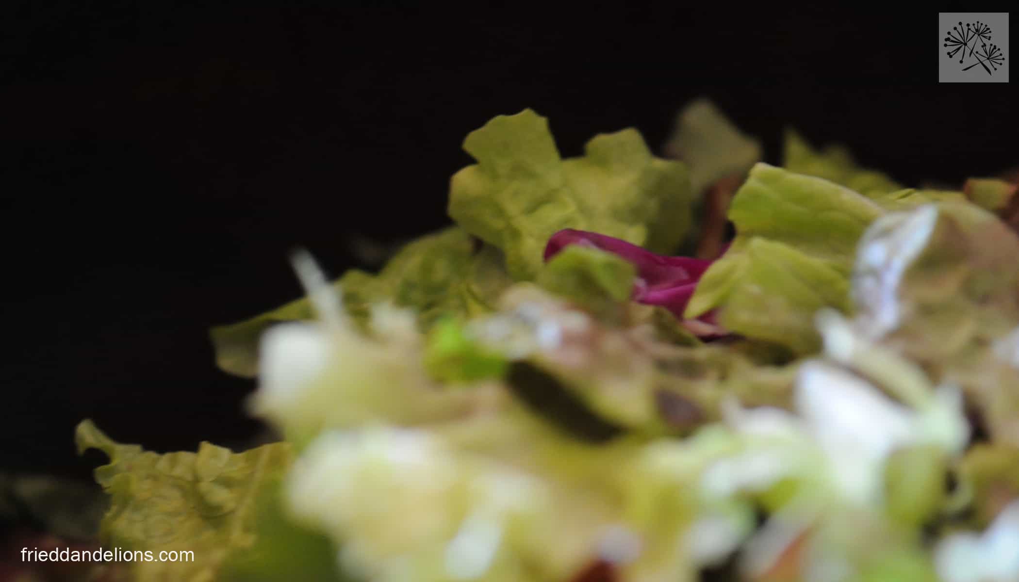 …a big green salad with red cabbage, corn, pepitas, orange bell pepper, scallions, cucumbers and my Cilantro Lime dressing…