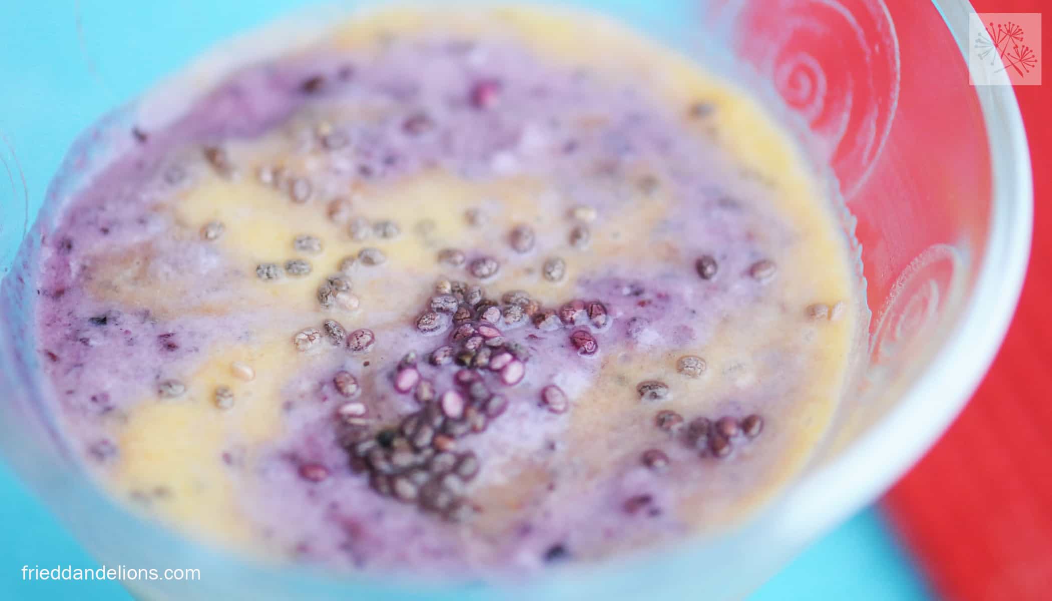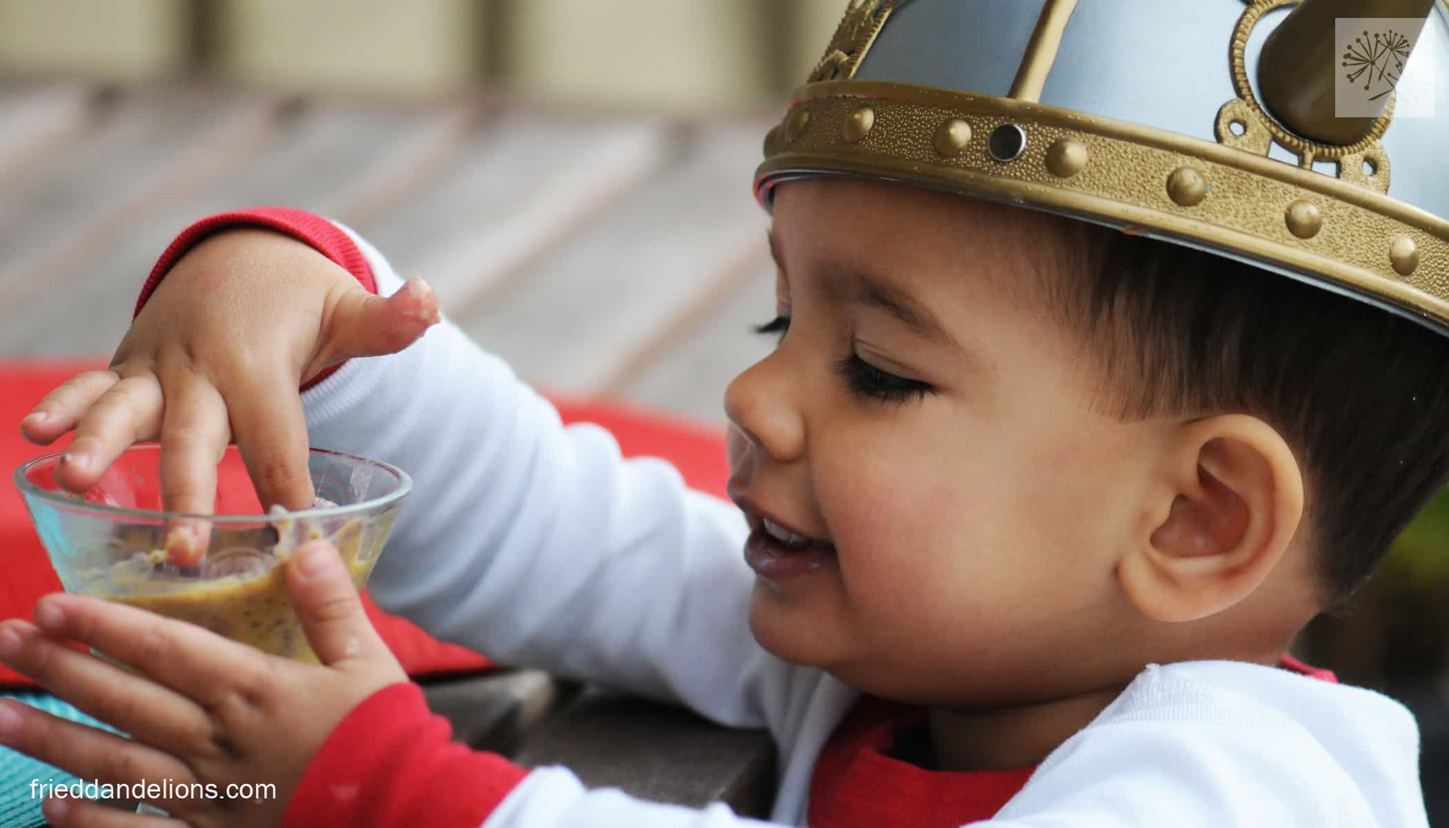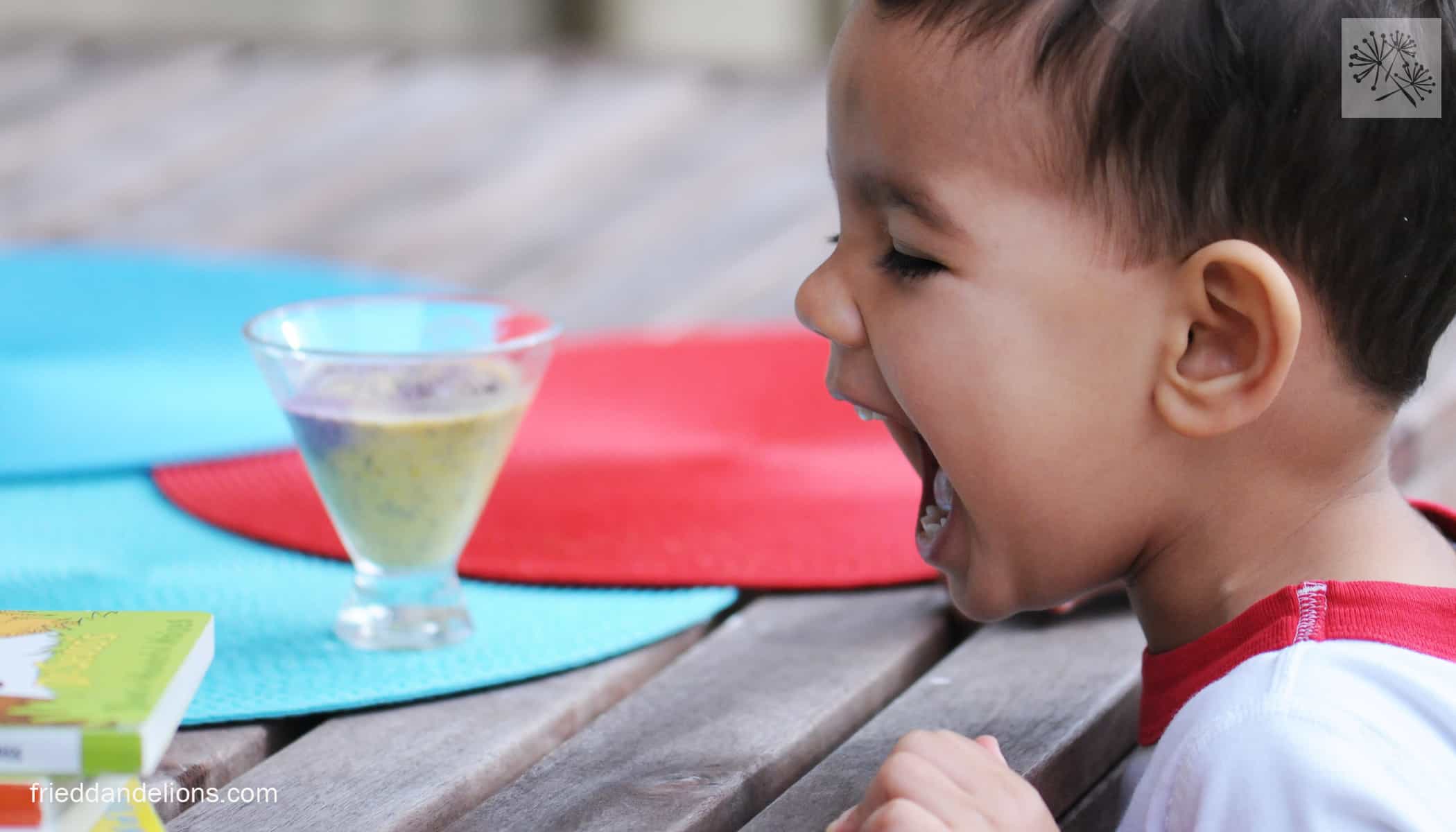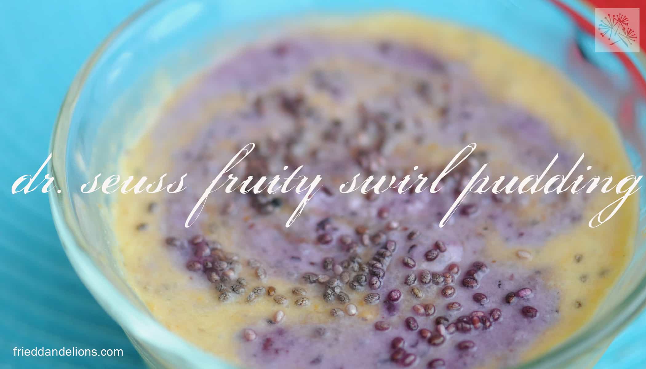 We read a lot of Dr. Seuss in our house. We also eat a lot of chia seeds. So when I saw this fun recipe from Kathy Patalsky, one of my favorite vegan bloggers, I knew I had to make it on Dr. Seuss’ birthday. Dr. Seuss Fruity Swirl Pudding—based on the swirly cover of Oh, the Places You’ll Go!—was delicious—swirls of coconutty orange and blueberry, spotted with squishy chia seeds—I think it was meant for a dessert but we ate it for breakfast. As you can see by my ridiculous number of pictures, the biggest Dr. Seuss fan in our house loved it (as did his parents). He couldn’t even wait for me to finish taking pictures—or to grab a spoon for that matter—to start eating!
