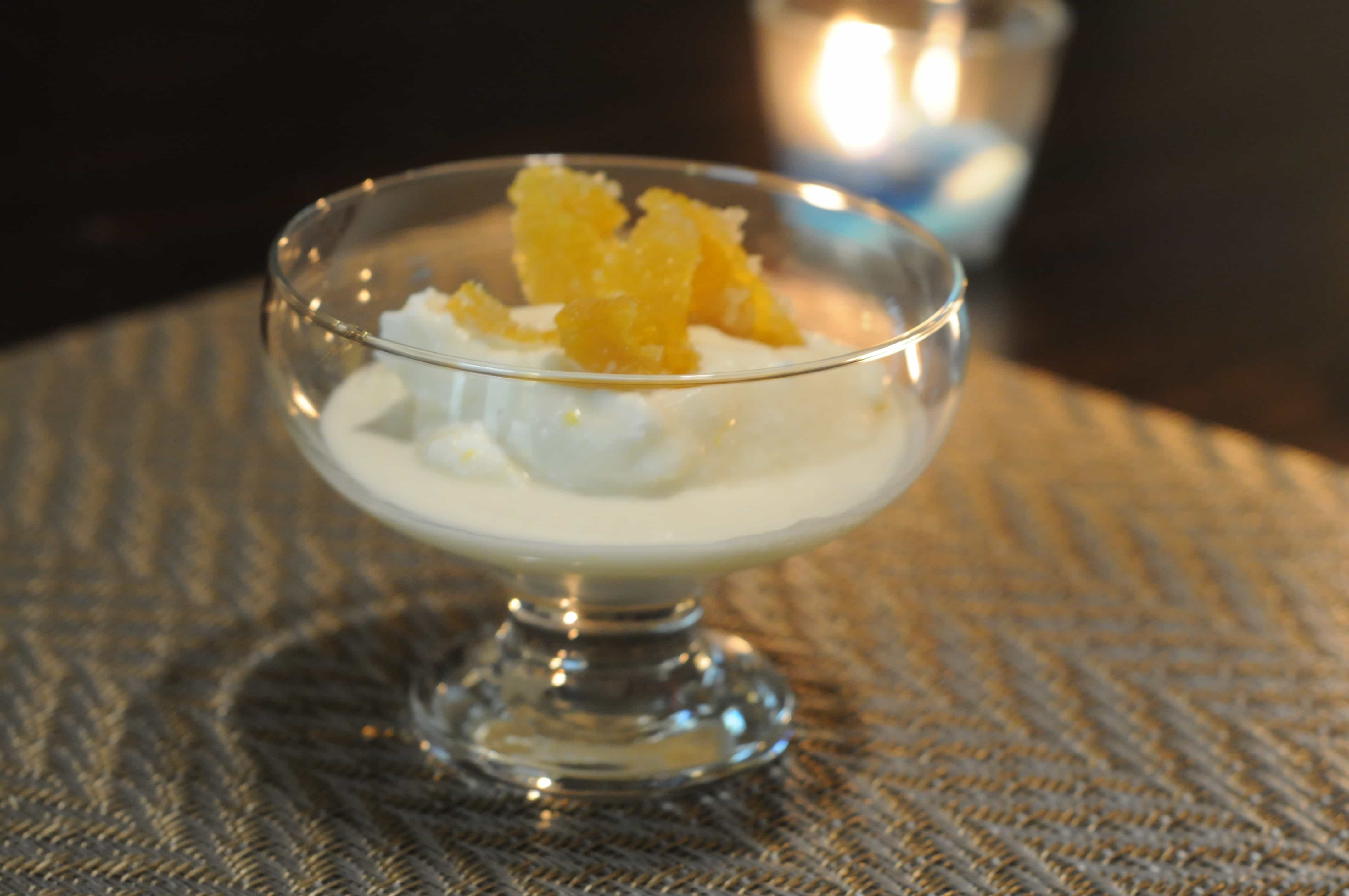 I was lucky enough to save myself 1 bowl for the next day, and after freezing overnight I thought it was even better. The taste was the same, but it had more of a real sorbet consistency. So…I recommend that you make this the day before if possible, but it is absolutely delicious no matter what—you could probably just drink the mix before its frozen even…its that good! Garnish with candied lemon peels and impress your guests!