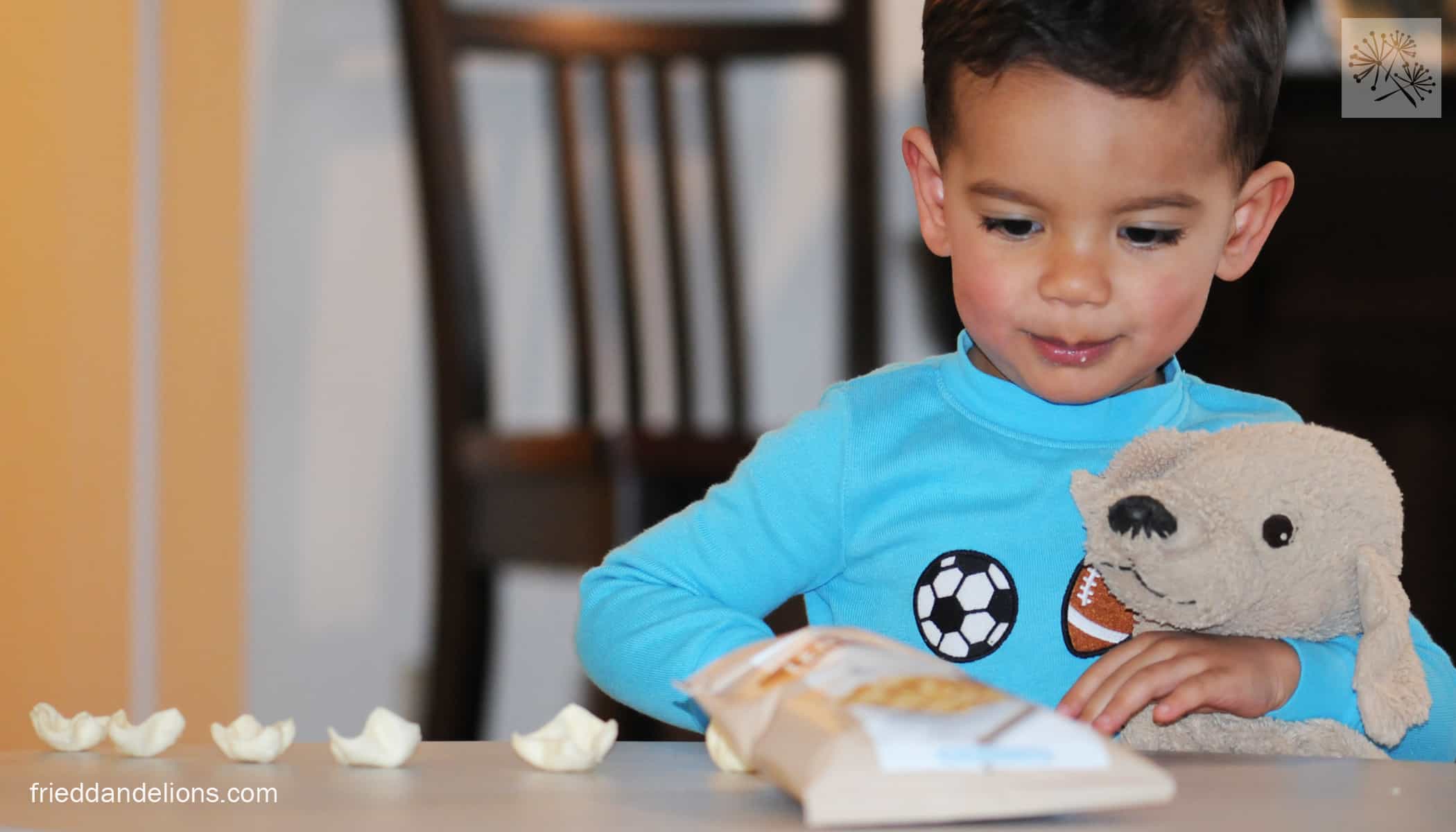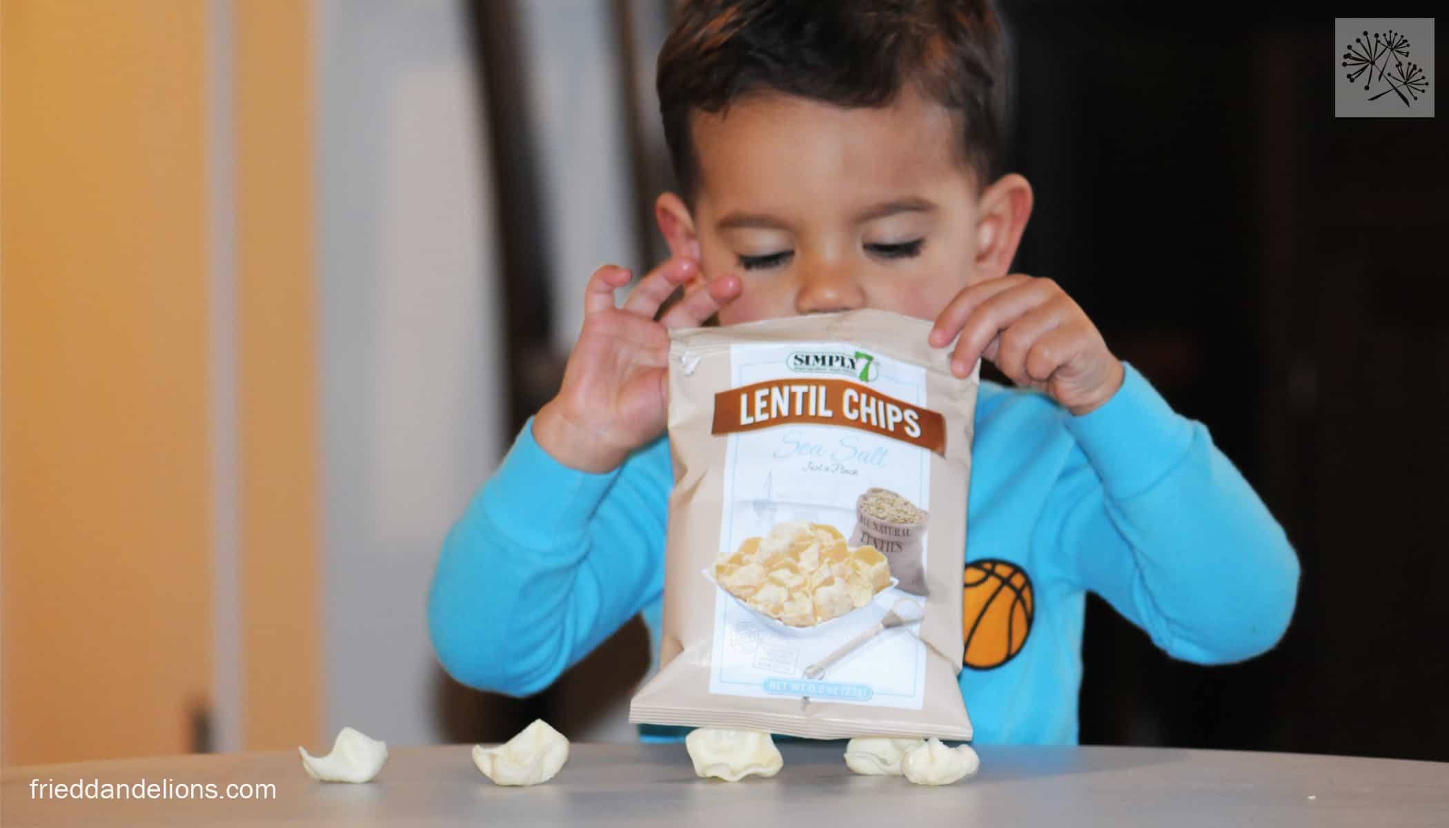 The Simply 7 lentil chips were so yummy—they reminded me of “Pop” chips, and I was so happy to see that they only had 4 ingredients. I had to work to make sure David saved some for Irving—he loved them. In fact, the next day when I was in the other room I heard a little voice calling to me saying “Mommy, David climbed up and ate the chips.” There he was, perched on a bar stool, stuffing his face with more lentil chips. In the end I think I was only able to save about 5 chips for Irving. We’ll definitely be looking for these again!