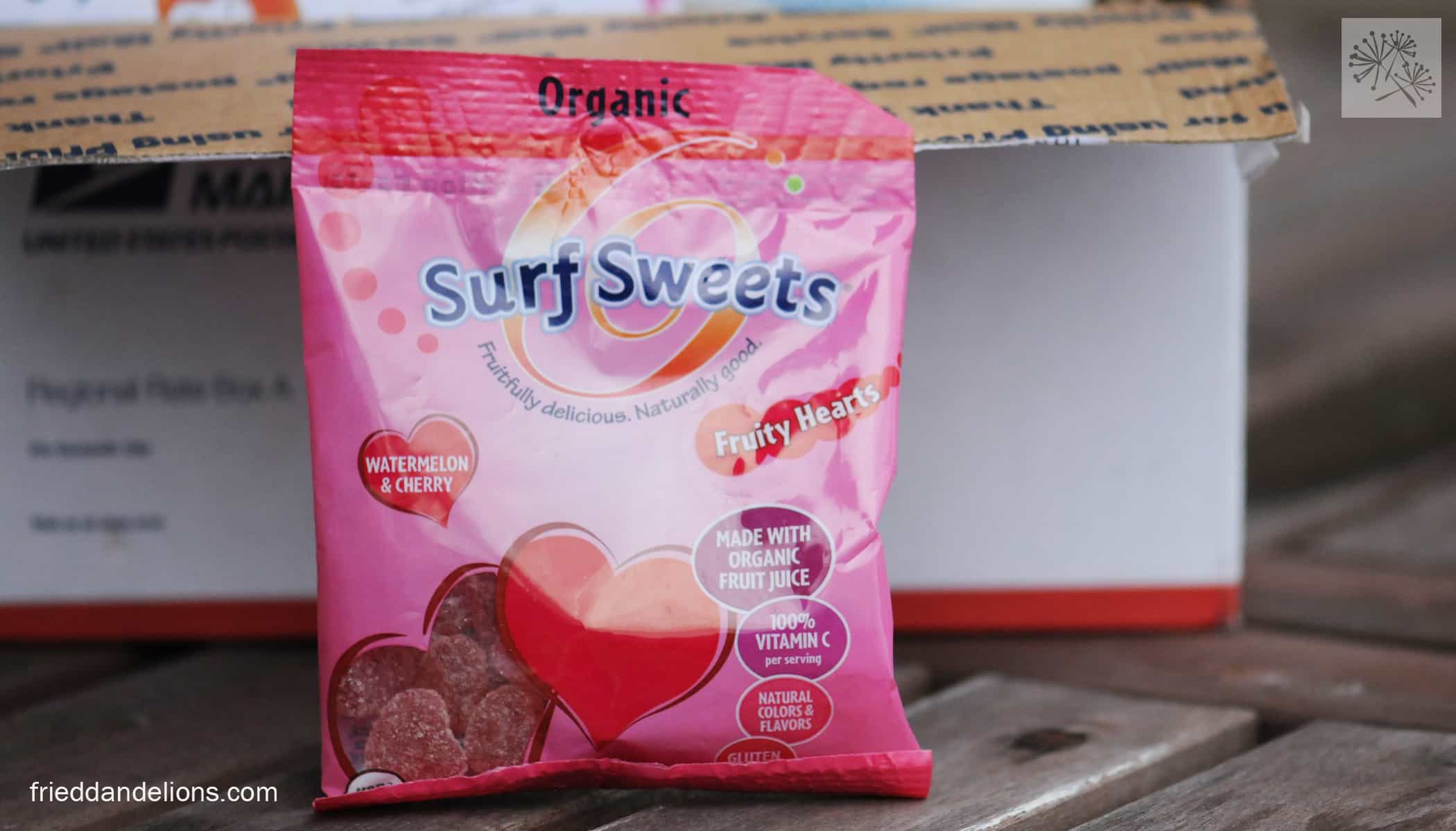 I loved the Surf Sweets gummy hearts. Our pack was watermelon and cherry flavor. David, as you know, is very excited about “Valentine’s Day Mouse Hearts,” so the fact that they were shaped like hearts made them even better! It was nice to try a gelatin-free gummy candy.