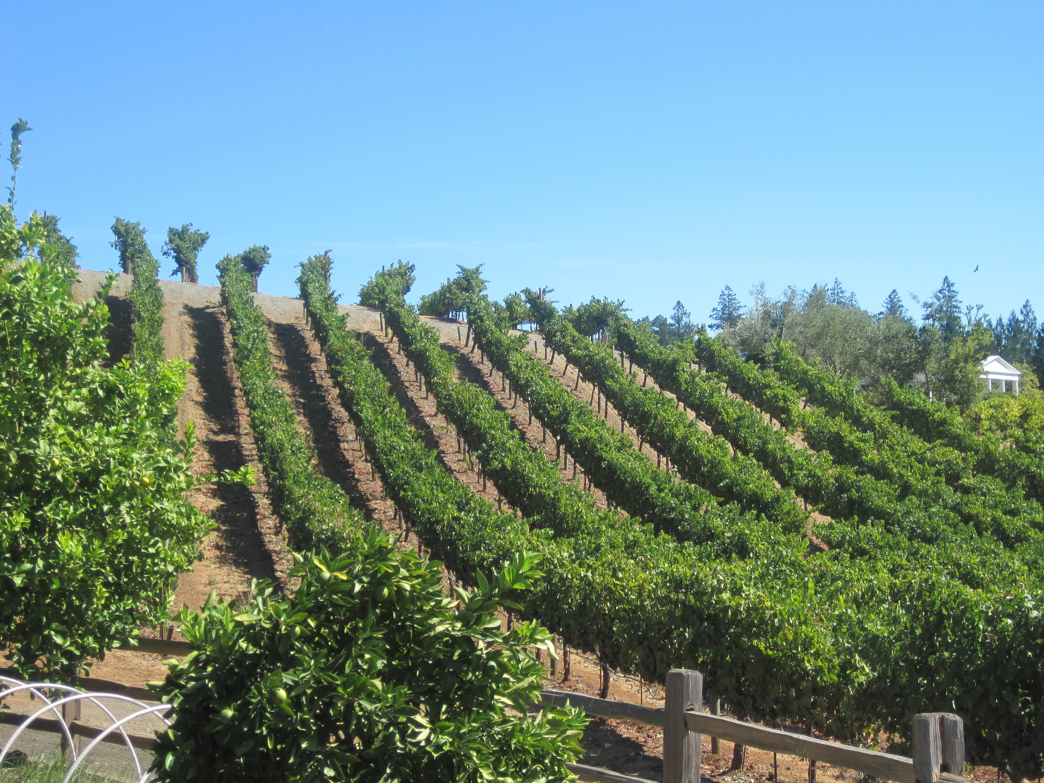It was so interesting to see how everything worked together. Old wine barrels were broken apart and used for garden arbors, plants that attracted certain helpful bugs were planted instead of using pesticides, and cover crops are planted to keep the soil fresh (can’t rotate the grape vines like you can with other crops).