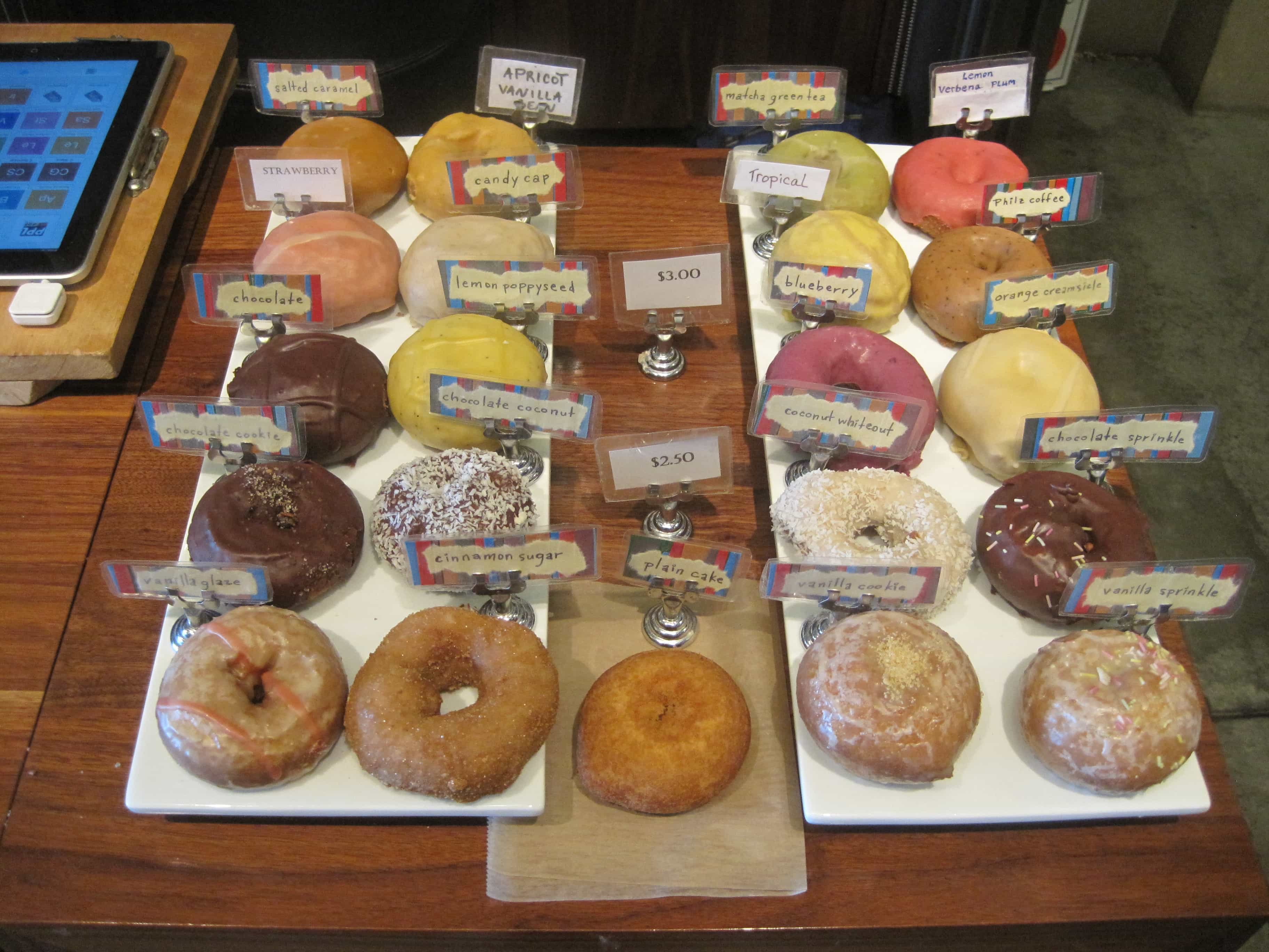 On Sunday, after a much needed good night’s sleep, we headed into San Francisco for some sight seeing, but not before enjoying a bowl of my sunshine granola that I had brought for Andy and Kirsten (I think I owe them another batch!). Our first stop was at the San Francisco Farmer’s Market in the Ferry Building, where I happily discovered a vegan donut booth—Pepples Organic Donuts. It was hard to choose between so many great flavors, but in the end I split a Philz Coffee donut with my brother…we were happy with our choice!