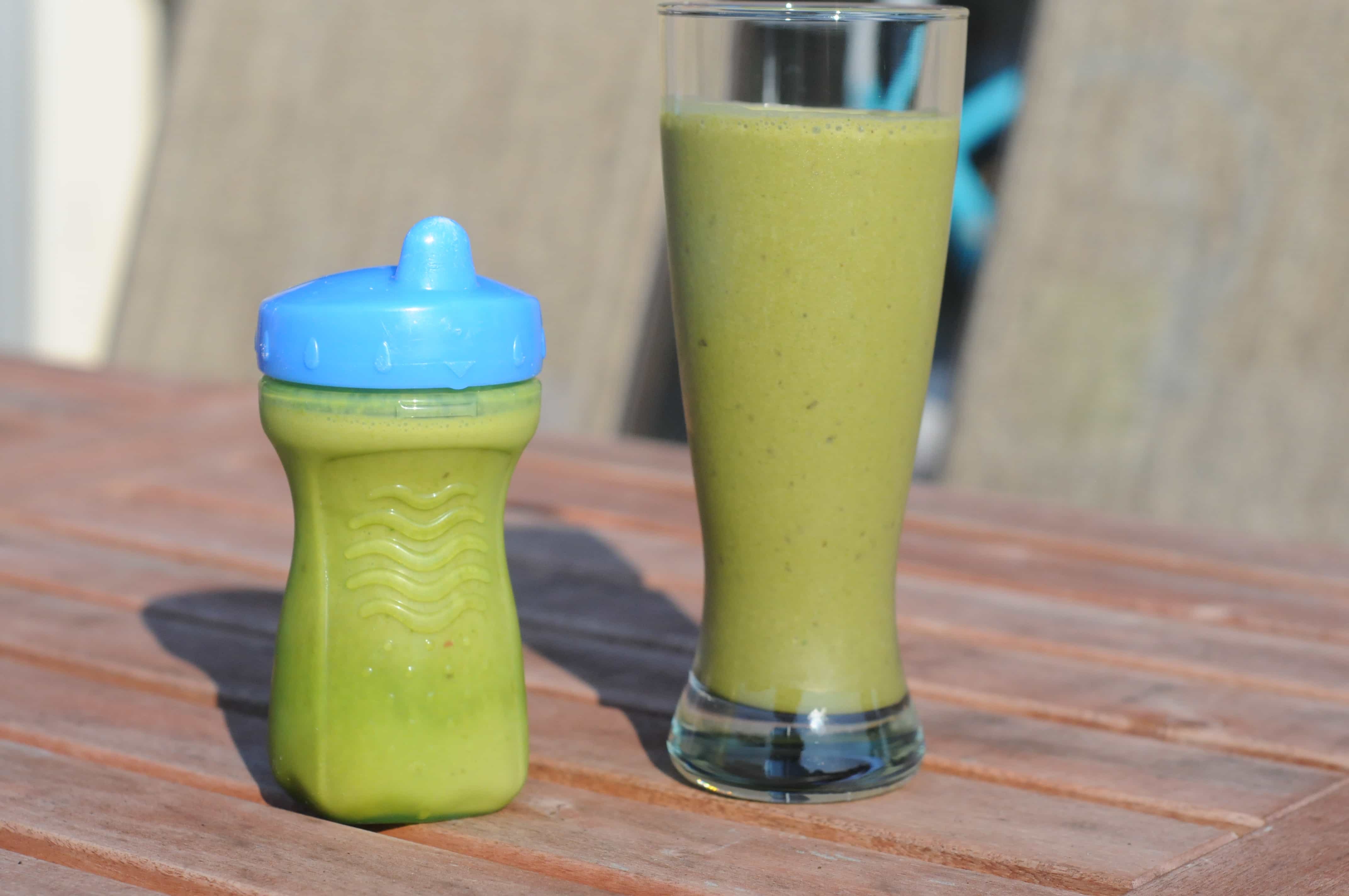 So…here are two recipes that combine really healthy veggies and vitamins with a great taste. They clock in between 220 and 325 calories (for the entire smoothie—not bad for an entire meal), with high amounts of vitamins A , B6, C and E, potassium, fiber, Iron, and Calcium, with no added sugar (Calorie Count). The Chocolate Peanut Butter Spinach Smoothie is high in protein as well. I made the “CPBSS” yesterday and David was begging for more. If your kids react to the bright green color, tell them its “Hulk” juice and ask them to just give it a taste. Ease your way in with the spinach…start with just 1 cup and work up from there. It really does blend right in and you will be surprised at how strong the sweet taste of the banana is—bananas are great for masking all sorts of other healthy foods. If you love the spinach, work your way up from there…kale is also delicious and packed with even more nutrients, but is a bit healthier tasting 🙂