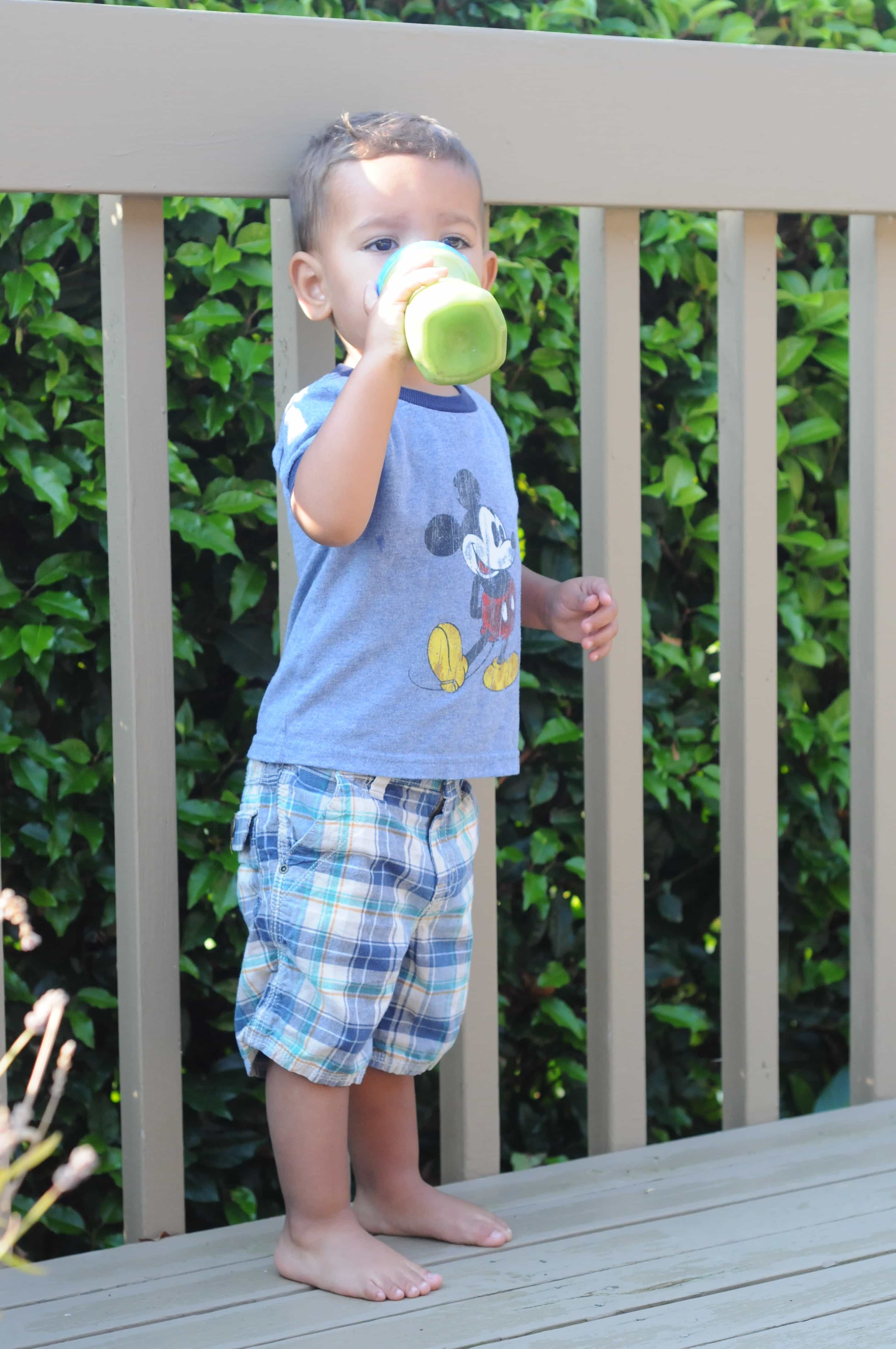 Toddler Variation: After I poured my smoothie, I added 1/4 c of baby cereal (I like this one from Earth’s Best) and blended again before serving David. The baby cereal just dissolves right in, and is packed with even more nutrients!