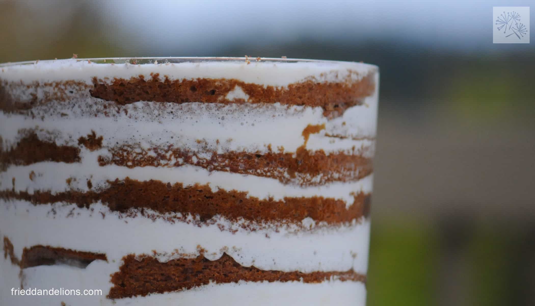 Once I tackled the whipped cream issue, I had to figure out what to do about the lady fingers, which are normally made with eggs. I used to buy premade lady fingers and making tiramisu was as simple as layering everything together. I started looking at recipes for lady fingers but they all required large amounts of eggs. So I changed gears a bit and found a birthday cake recipe from Chef Chloe