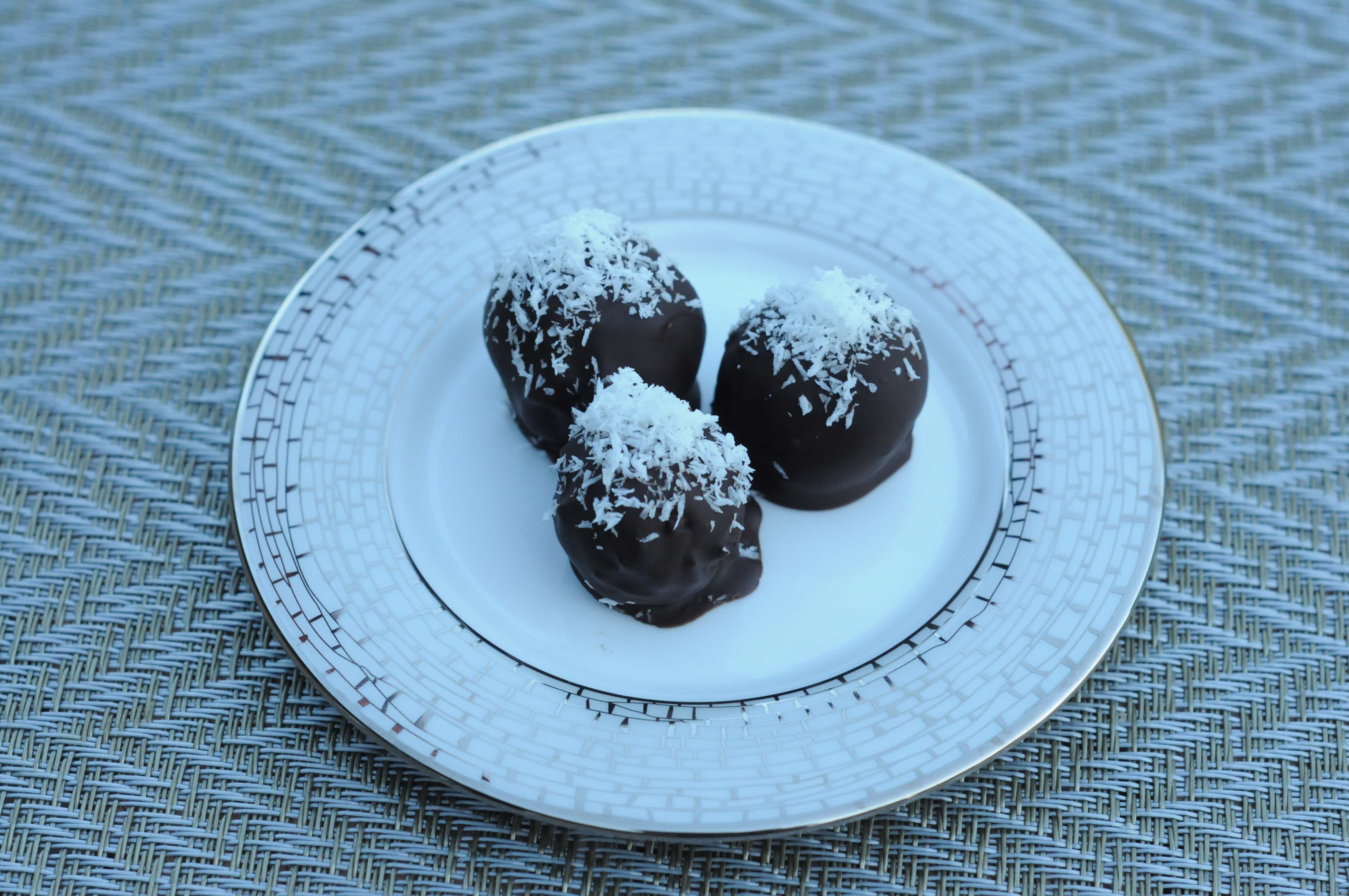Sprinkle top with coconut. Once all balls have been rolled, place in freezer to harden chocolate. Place all in container with lid and store in refrigerator. Enjoy!