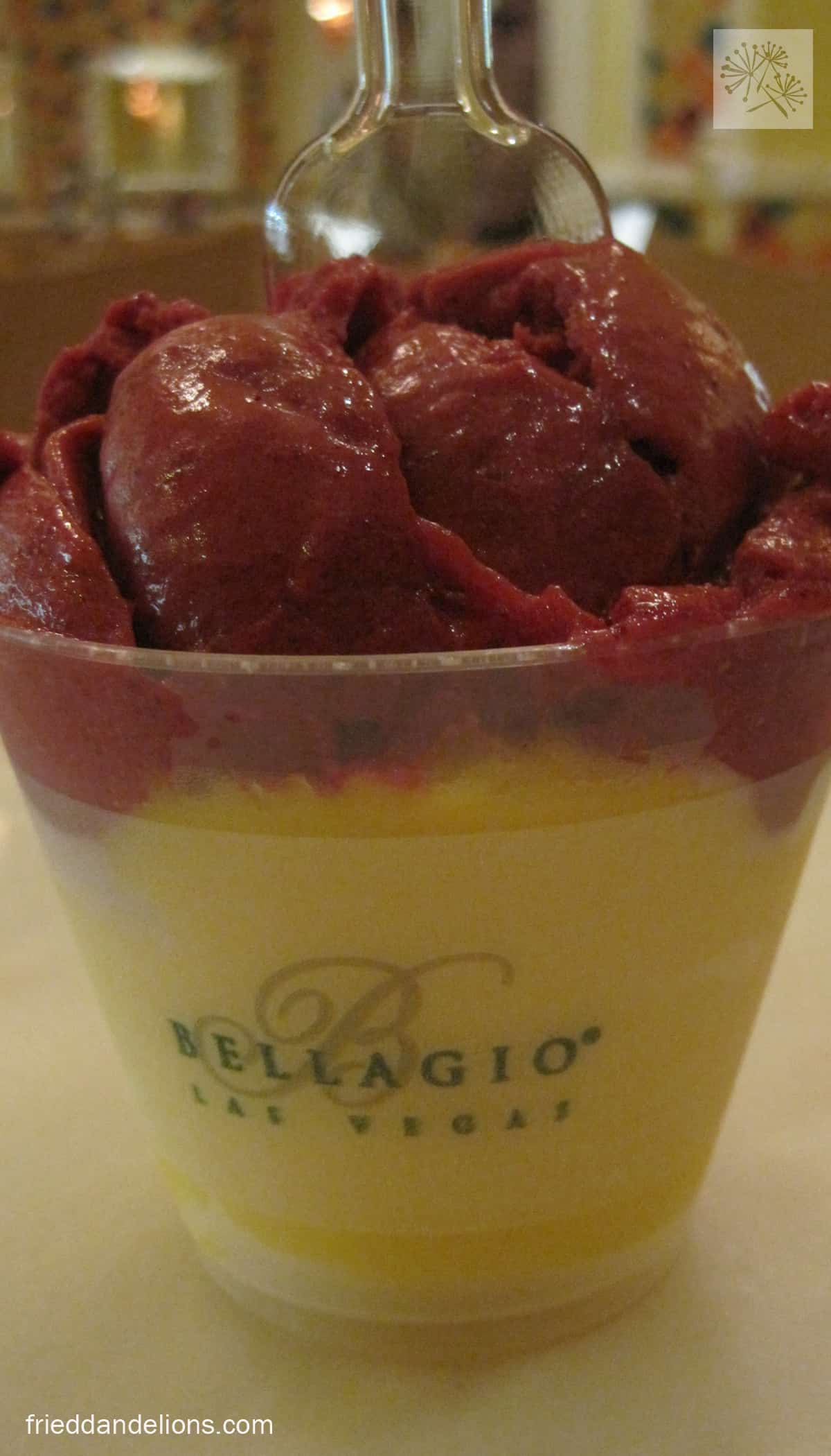 We were so stuffed from the buffet so we spent most of Sunday afternoon walking. Towards the end of the afternoon, on our way back to our hotel, we stopped at the Belaggio for some gelato. We have been to Vegas 5 or 6 times together, and every trip has included a stop here. We each had a combo of berry and mango sorbet. So refreshing, and the perfect light snack to hold us over until our late night dinner.