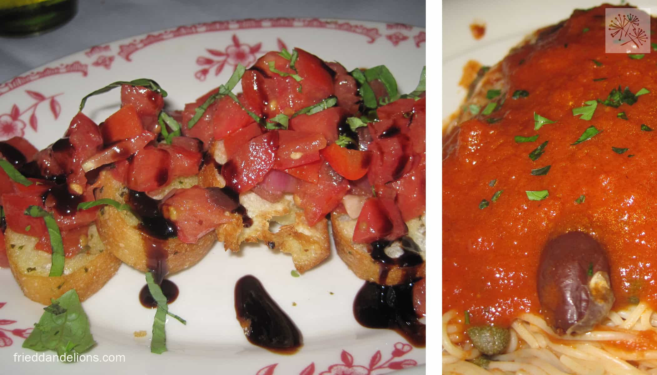 Late that night we decided to do a simpler (and less expensive!) dinner at Maggianos. It was right across the street from the club we were going to later that night so it worked out well. Our server was very understanding when I told him that I was vegan and quickly shared some ideas for what I might like to order. I kept it simple with bruschetta to share, a salad, and angel hair pasta with marinara with olives and capers.