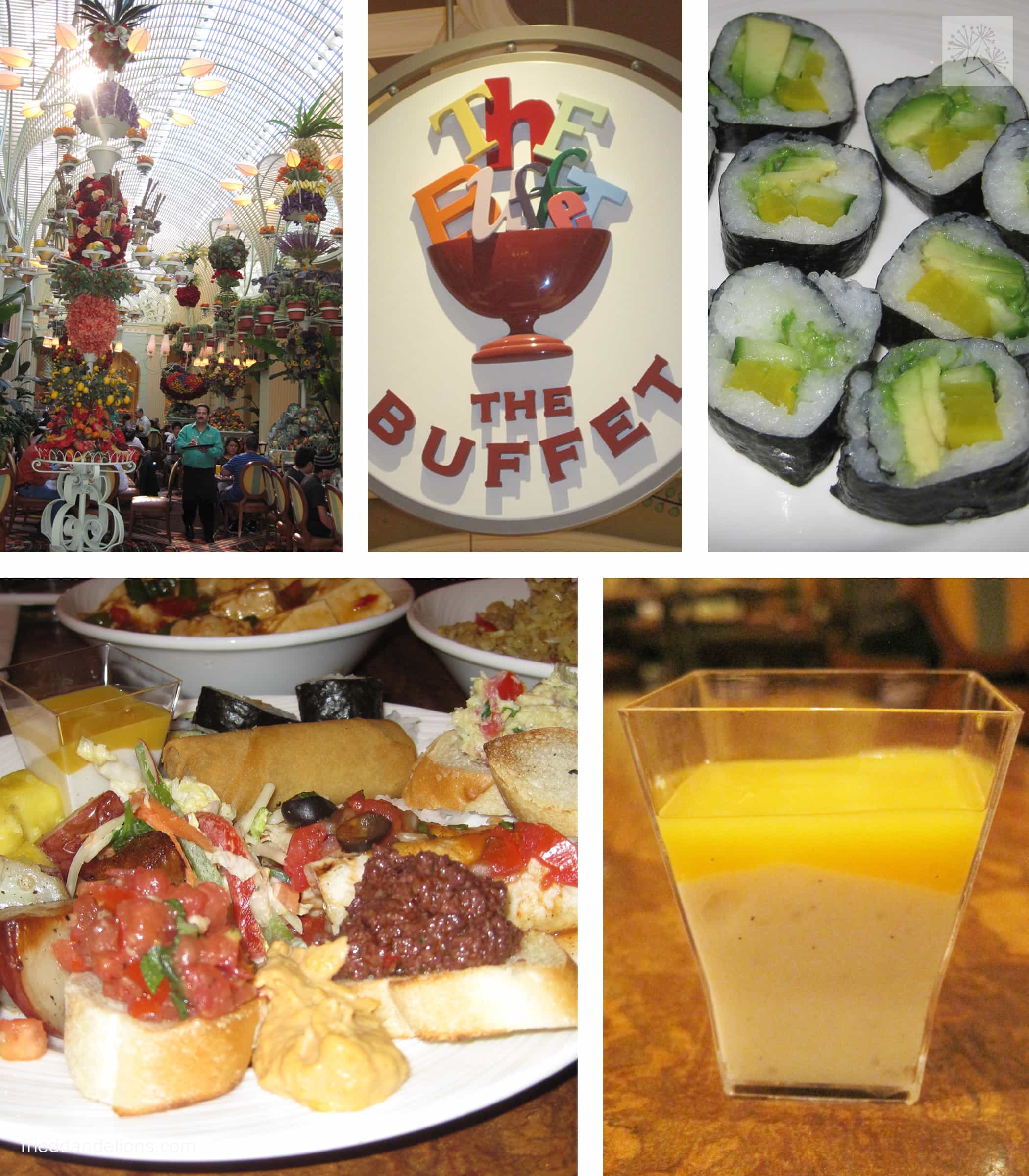 On Sunday morning we headed back to the Wynn to check out the buffet. The buffet is a quintessential Vegas experience. I did a quick walk through, hoping to see a vegan section. I didn’t see anything super obvious so I asked one of the servers. She asked me to wait for a minute and came back with a man who gave me a tour of the entire buffet, telling me about different vegan options. Some were labeled vegan, others could be altered just a bit for me to be vegan. I could get a personal pizza, sushi made to order, and many of the other dishes with one topping left off. It was actually pretty overwhelming! I ended up with a ridiculously huge spread—I definitely served myself with my eyes! I had several crostinis with a variety of spreads, spring rolls, sushi, fried rice and tofu made to order, roasted potatoes, and a yummy salad. And for dessert—yes, there’s more—I had the best coconut tapioca pudding with passion fruit jelly on top. I’ll be trying to recreate that one tonight! So good!