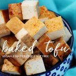 Place your tofu slabs onto a parchment lined baking tray. Bake for 45 minutes, flipping half way through. The tofu will firm up slightly as it is chilled. Eat right away, or store in the fridge for lunch the next day. We like to cut ours into cubes, but you could really cut it any way you want! Enjoy!