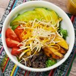 Packed with greens, fresh veggies, and roasted potatoes, my Cantina Greens Bowl with Turmeric Paprika Vinaigrette is packed with flavor! (vegan, gluten free, soy free, nut free)