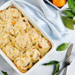 Arrange the rolls into an oven safe dish—I like to use a 9x12" casserole dish.