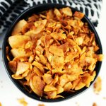 Bake for 25-30 minutes, stirring every 5 minutes. Do not let the coconut bacon overcook, or it will taste burnt. The bacon will continue crisping as it cools, so err on the side of less cooking time. 25 minutes should be just right!