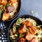 Remove from the heat and divide between two bowls. Place half of the tofu on top of each bowl of udon. Drizzle the remaining hoisin mixture over the top.