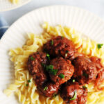 This recipe, with the amounts as written, works best with about 1 1/2 - 2 pounds of meatballs. Depending on the type of frozen vegan meatballs you have, the package sizes will be different. I use a 2 pound box of Alpha brand vegan meatballs in the pictures above. I also like using the Whole Foods 365 brand Plant Based Meatballs, and the package size is 10.5 ounces. I would use two packages in this recipe. The amount of meatballs you use is flexible, and depending on many you use your finished dish will be more or less saucy.