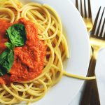 Serve over pasta! This makes enough sauce for about two pounds of pasta—leftover sauce can be frozen for a future meal!
