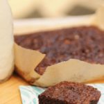 Preheat your oven to 350 degrees. Grease an 8 inch baking pan* with extra coconut oil and set aside. I like to also line the pan in each direction with parchment paper for easy removal from the pan.