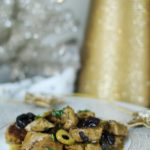 Add the bay leaf, prunes, olives and capers. Heat the sauce over medium heat while it starts to bubble and thicken. This takes about 5 minutes.