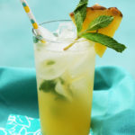 Pour the pineapple juice over the mint rum mixture. Stir.