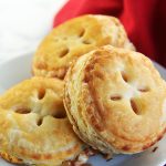 Cut the puff pastry into 12 rounds using a cookie cutter (optionally you can cut it into squares)